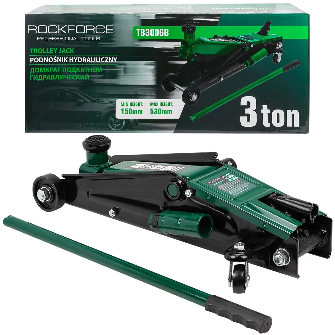 Домкрат подкатной гидравлический идеально подходит для ежедневного использования в автомастерской, на шиномонтаже или в гараже. Прочный гидравлический блок с поршневым насосом обеспечивает быстрый подъем автомобиля без особых усилий. Подходит для легковых автомобилей. Использовать только на ровной поверхности. Обязательно использовать ремонтные подставки для обеспечения безопасности. Домкрат рассчитан на поднятие и опускание автомобиля, использовать только по назначению. Легко можно перевозить в багажнике, занимает мало места. Домкрат оснащен 2 фиксированными и 2 поворотными колесами, поэтому его можно легко перемещать. В комплекте с домкратом идёт сменная надставка высотой 120мм, которая позволяет увеличивать эффективную высоту подьема. Благодаря предохранительному клапану домкрат соответствует стандарту безопасности.