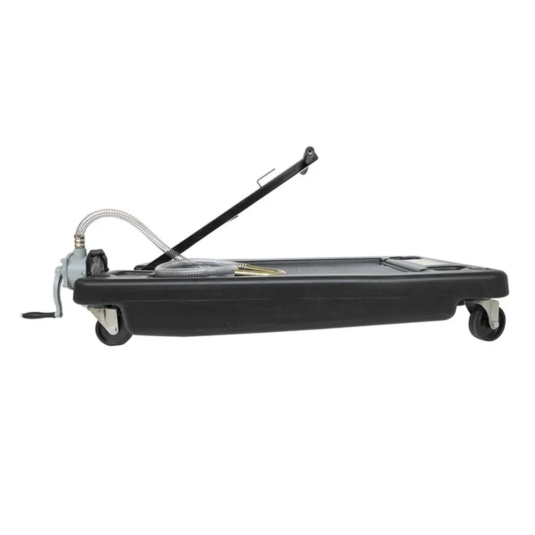 Емкость с для слива масла специально разработана и используется на предприятиях автосервиса, а также в специальных пунктах при АЗС и магазинах, предлагающих покупателям услугу замены масла на месте. Емкость для слива отработанного масла объемом 80 литров и размерами 110х70х19см оснащена двумя парами колесам диаметром 100мм, что позволяет свободно маневрировать с ней в помещениях автосервиса и выставлять точно под сливную магистраль автомобиля. Емкость такде оборудована ручным алюминиевым роторным насосом со шлангом длиной 2.5м, с помощью которого отработанное масло выкачивается из емкости.