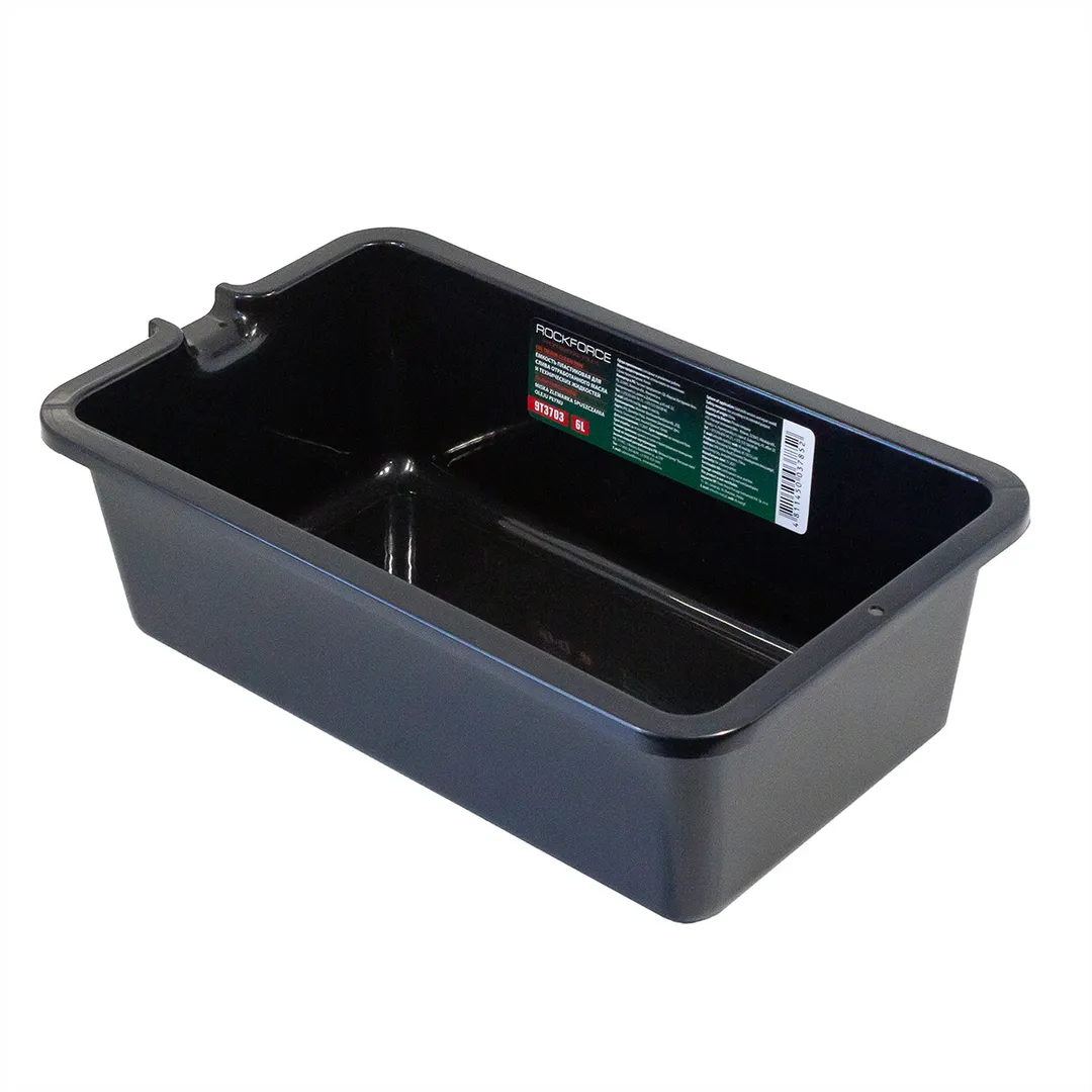 Емкость пластмассовая прямоугольная для слива масла и технических жидкостей 6 л. Таз изготовлен из прочного пластика, устойчивого к химическим воздействиям и ударам. Прочный масло и бензино-стойкий универсальный пластиковый таз предназначен для сбора и утилизации отработанного моторного и трансмиссионного масла, топлива, антифриза, а также прочих технических жидкостей из агрегатов автомобиля в процессе обслуживания авто. Специальная конструкция поддона не допускает вытекание масла. Маслосборник имеет сливную кромку во избежание разлива масла и других жидкостей. Имеется носик для удобного опустошения ёмкости. Имеют четкую наружную или внутреннюю шкалу: как окрашенную, так и выгравированную, удобную ручку и конфигурацию, что позволяет легко отмерять, переносить и переливать требуемое количество ГСМ. Поддон для замены масла оснащен удобными рукоятками для комфортной работы. Объём: 6 литров. Размер: 395х230х125 мм.