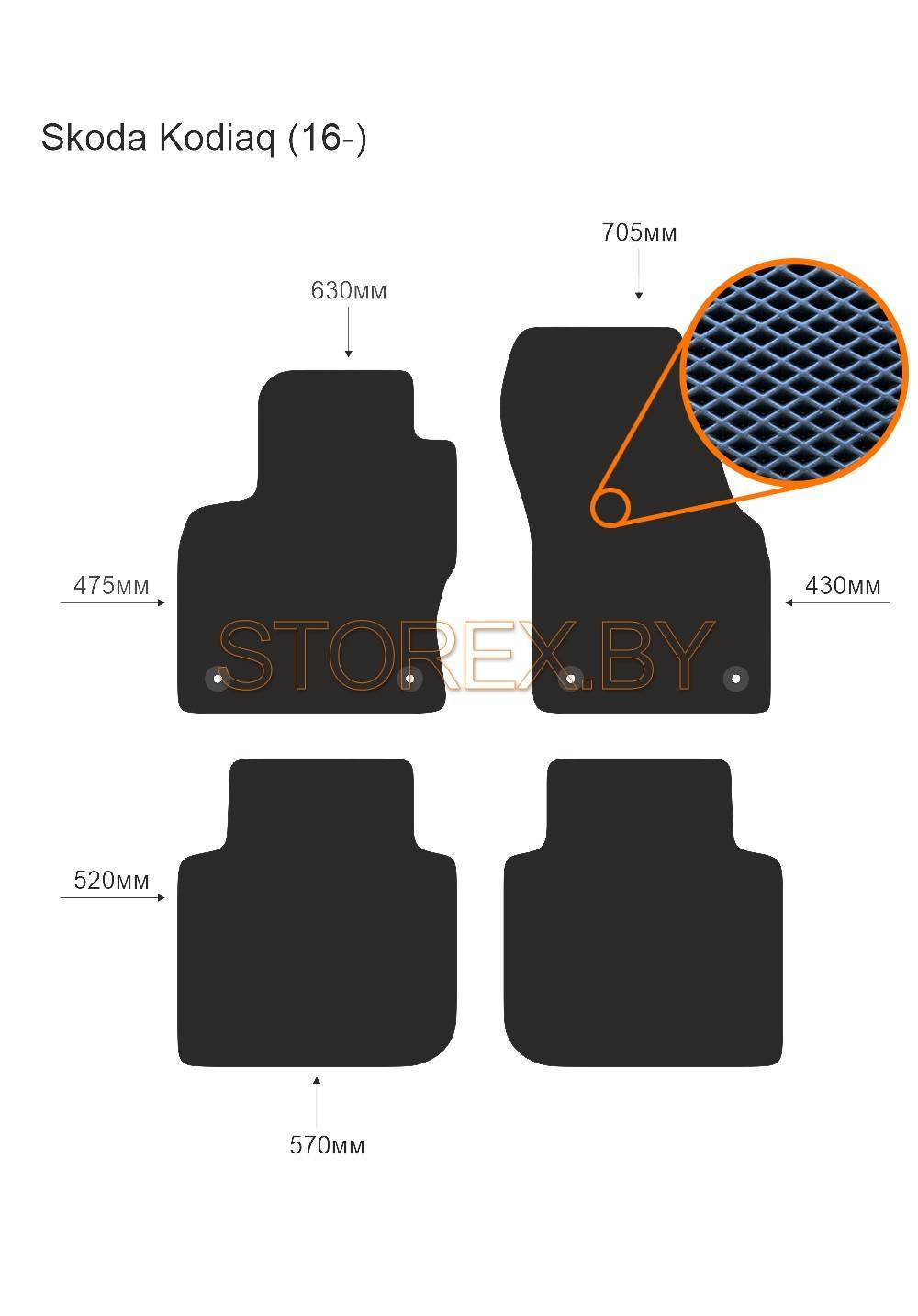 Цена указана за базовый комплект из 4-х ковриков в салон без подпятника и лейбла. Можно приобрести любой коврик отдельно (водительский или пассажирские), а также в багажник. Модельные коврики изготовлены по лекалам вашего автомобиля, плотно ложатся в салон или багажник. Основные преимущества ЭВА-полимера: Эластичность и деформационная стойкость.Широкий рабочий температурный диапазон от -70 до +80 градусов по Цельсию. Высокая устойчивость к механическому воздействию и агрессивным средам. Химическая инертность и нетаксичность, отсутствие запаха. Дополнительна возможна установка: подпятника из металла (уплотнение на водительском коврике размером 20*30 см); люверса и липучки для надежной фиксации; металлической лейблы с логотипом любой марки автомобиля. Возможные цвета: черный; серый; бежевый; коричневый. Два вида соты, ромб и шестиугольник.