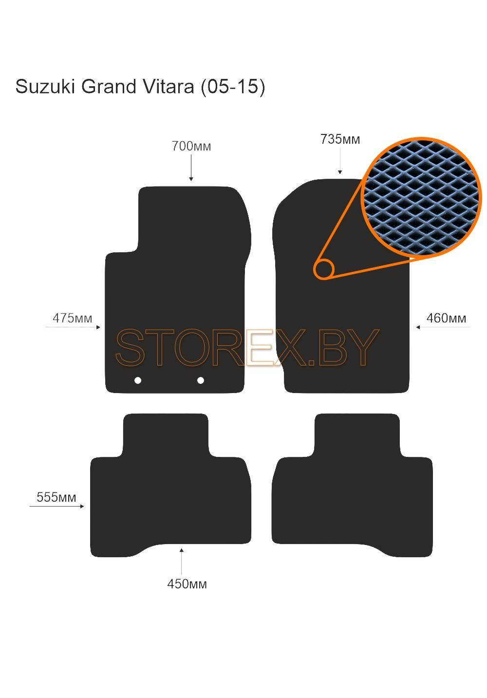 Цена указана за базовый комплект из 4-х ковриков в салон без подпятника и лейбла. Можно приобрести любой коврик отдельно (водительский или пассажирские), а также в багажник. Модельные коврики изготовлены по лекалам вашего автомобиля, плотно ложатся в салон или багажник. Основные преимущества ЭВА-полимера: Эластичность и деформационная стойкость.Широкий рабочий температурный диапазон от -70 до +80 градусов по Цельсию. Высокая устойчивость к механическому воздействию и агрессивным средам. Химическая инертность и нетаксичность, отсутствие запаха. Дополнительна возможна установка: подпятника из металла (уплотнение на водительском коврике размером 20*30 см); люверса и липучки для надежной фиксации; металлической лейблы с логотипом любой марки автомобиля. Возможные цвета: черный; серый; бежевый; коричневый. Два вида соты, ромб и шестиугольник.