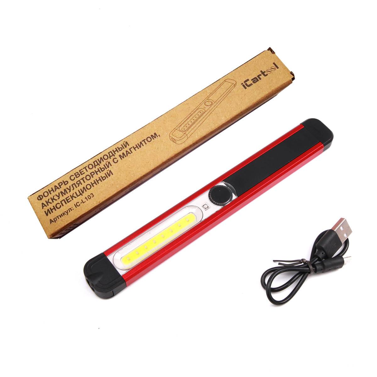 iCartool IC-L103 стильный светодиодный аккумуляторный фонарь с пятью режимами работы. Управление режимами осуществляется кнопкой. Корпус выполнен из алюминия и ABS- пластика. Встроенный магнит позволяет закрепить фонарь на любой металлической поверхности. Рекомендуется для автомехаников, слесарей, для решения повседневных бытовых задач. Стабильную и долговременную работу обеспечивает встроенный литий-ионной аккумулятор емкостью 1800 мАч, зарядка осуществляется через разъем Micro-USB. Время работы основного света до 2,5 часов.