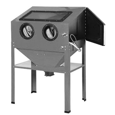 Пескоструйная камера предназначена для подготовки воздушно-пескоструйным способом поверхностей изделий перед нанесением различных покрытий, снятия ржавчины, окалины, формовочного грунта, снятия слоев краски, снятия заусенцев, сглаживания шероховатостей, матирования, упрочнения и полировки поверхностей. Пескоструйные камеры устанавливаются в цехах и закрытых отапливаемых помещениях. При обработке изделий в камерах в рабочей зоне, где происходит очистка, находятся только руки оператора. Таким образом, для обработки изделий не требуется создавать специальные площадки или выделять отдельное помещение, а также обеспечивать оператора спецодеждой. В комплект входит пистолет с комплектом форсунок и комплект защитных пленок. Для подключения потребуется компрессор .