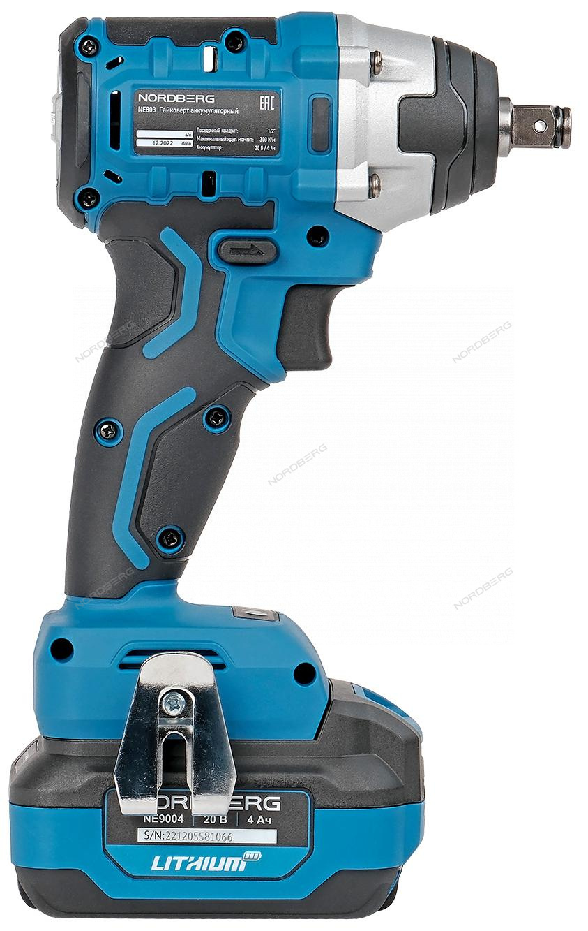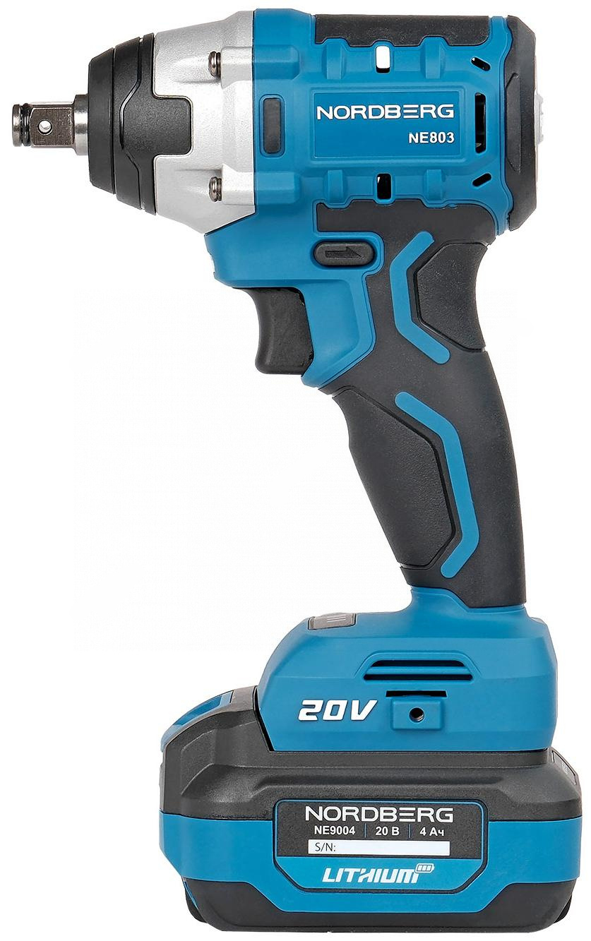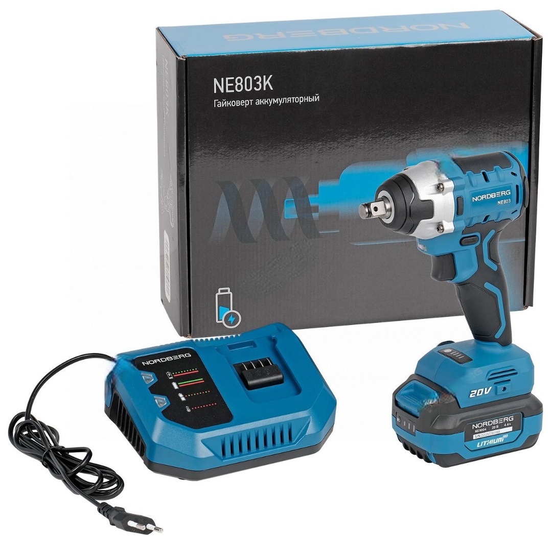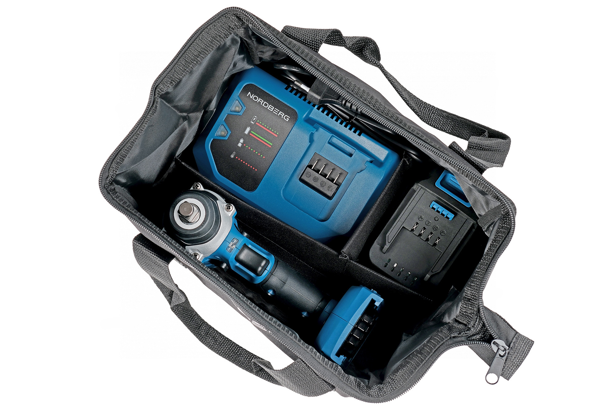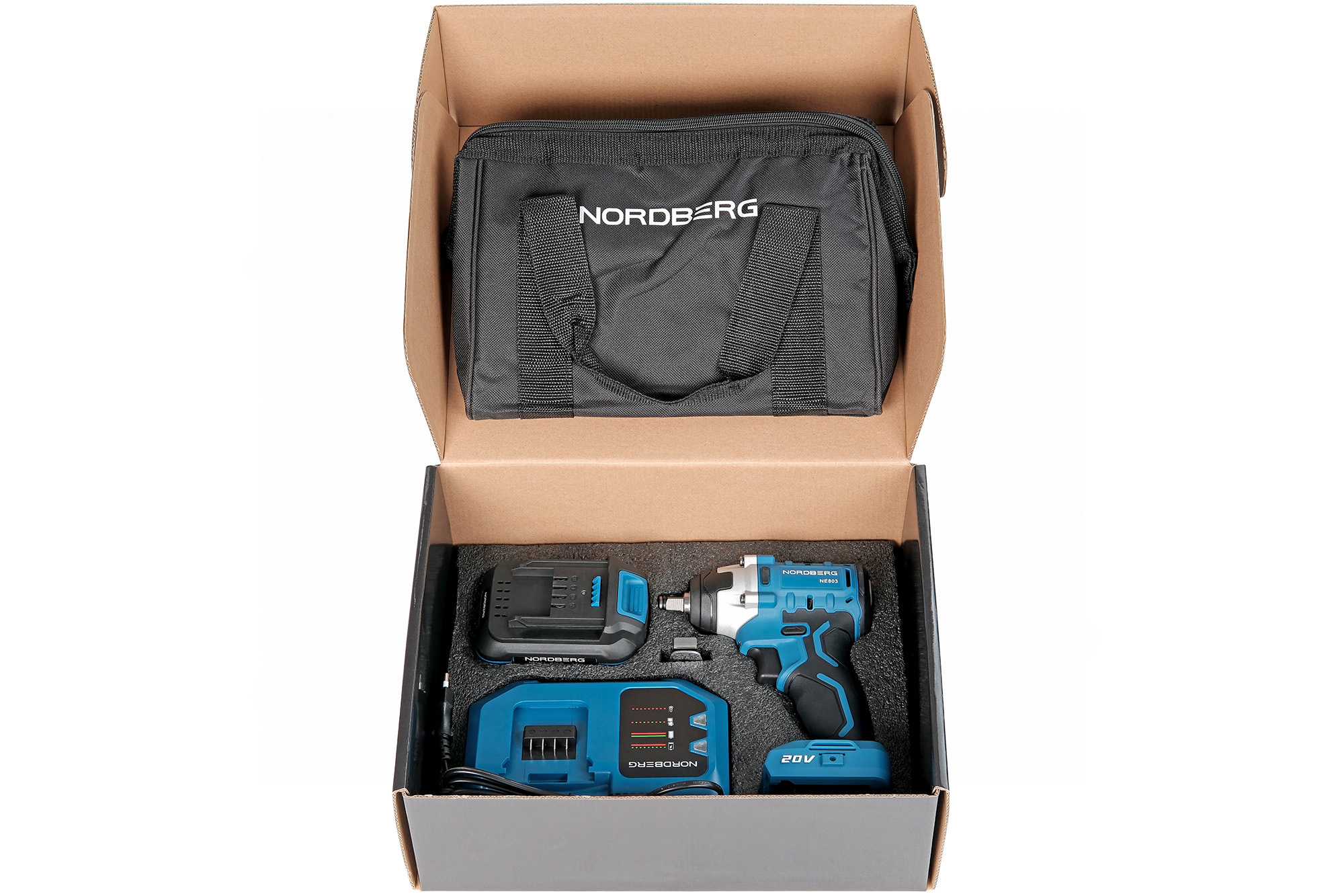 Гайковерт аккумуляторный, 1/2", 20В, 300Нм с 4A акк. и зар. уст-вом 4A, в мешке NORDBERG NE803K