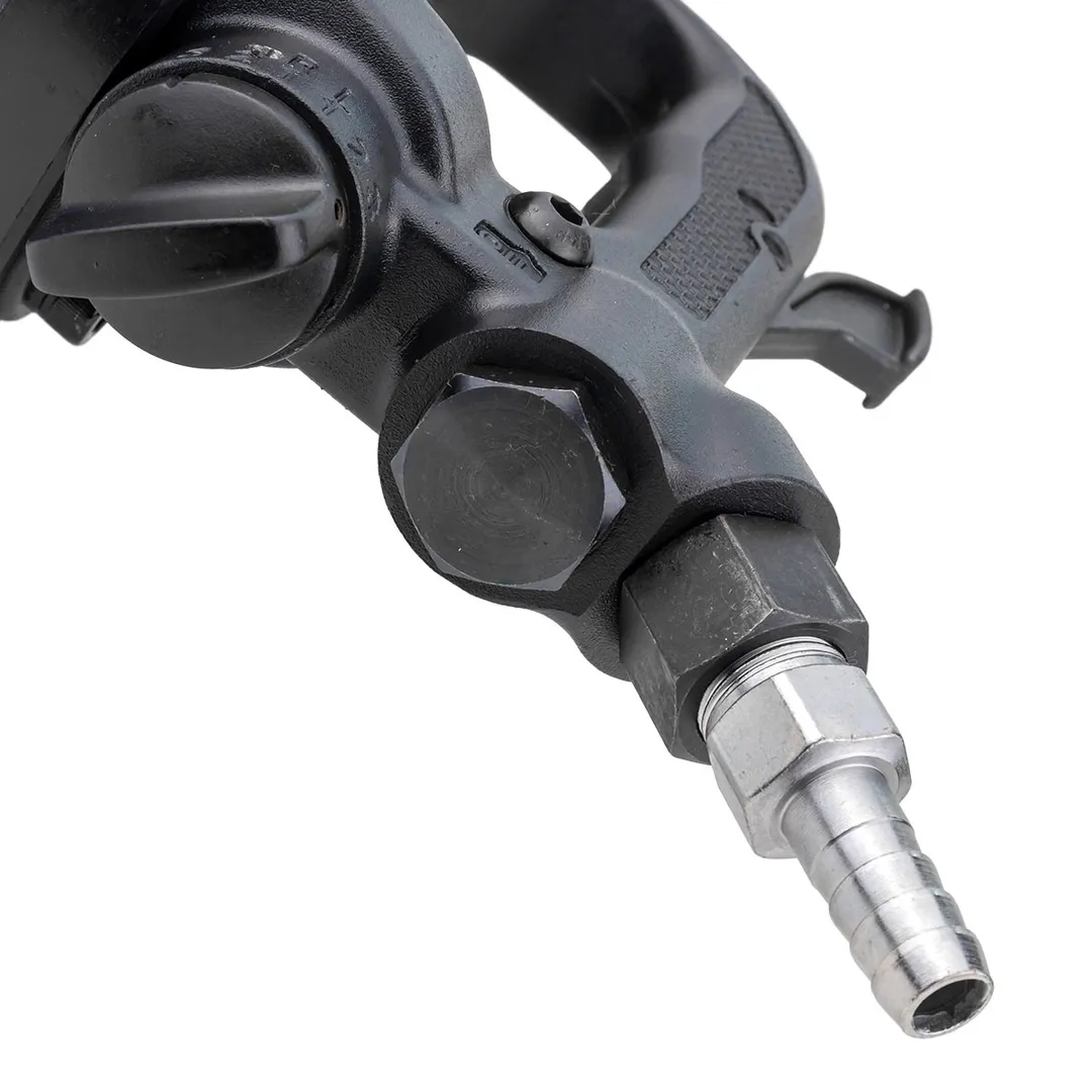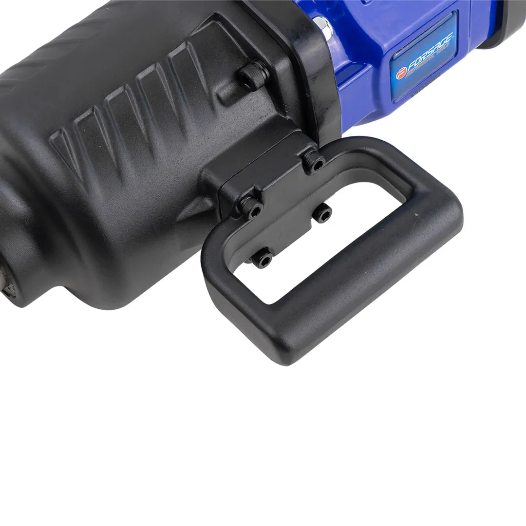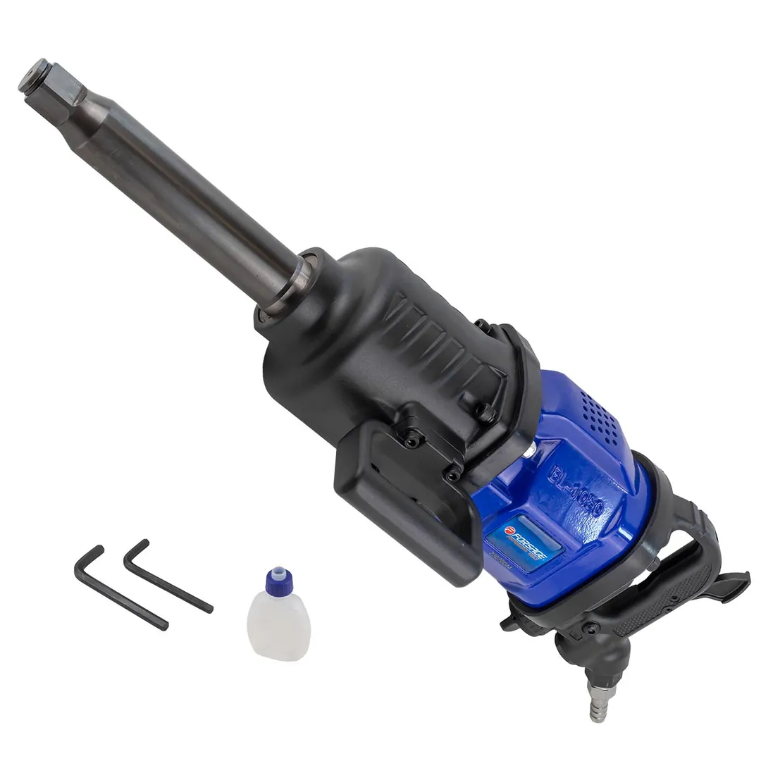 Пневматический гайковерт ударный с длинным валом оснащен квадратом шпинделя размером 1" (25,4 мм), который позволяет использовать широкий спектр головок и насадок различных размеров. За счет высокого крутящего момента и наличия эффективного ударного механизма, данный пнемвогайковерт с реверсом и регулировкой усилия способен успешно справляться с самыми высоконагруженными резьбовыми соединениями, и работать с насадками максимальных типоразмеров. Для удобства применения инструмент весом 21 кг оснащен основной рукоятью пистолетного типа и надежной дополнительной боковой ручкой. Инструмент комплектуется емкостью для смазки и регулировочными ключами. Пневматический ударный гайковерт с реверсом и регулировкой усилия затяжки предназначен для авторемонтных предприятий и производства работ в шиномонтажных мастерских, в том числе на грузовых автомобилях самой высокой грузоподъемности.