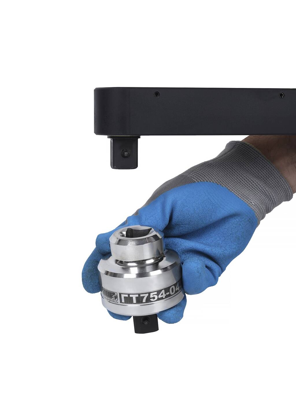 Высокопрочная головка с трещоткой (только для правого вращения) контролирует затяжку крутящего момента в комбинации с динамометрическим ключом.