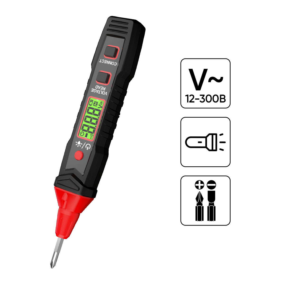 Тестер-индикатор с функцией отвёртки IC-M90 — компактный и универсальный прибор для быстрого и безопасного определения наличия переменного напряжения в электрических цепях (AC 12–300 В, 50/60 Гц). Подходит для дома, ремонта, обслуживания электрооборудования и профессионального применения.