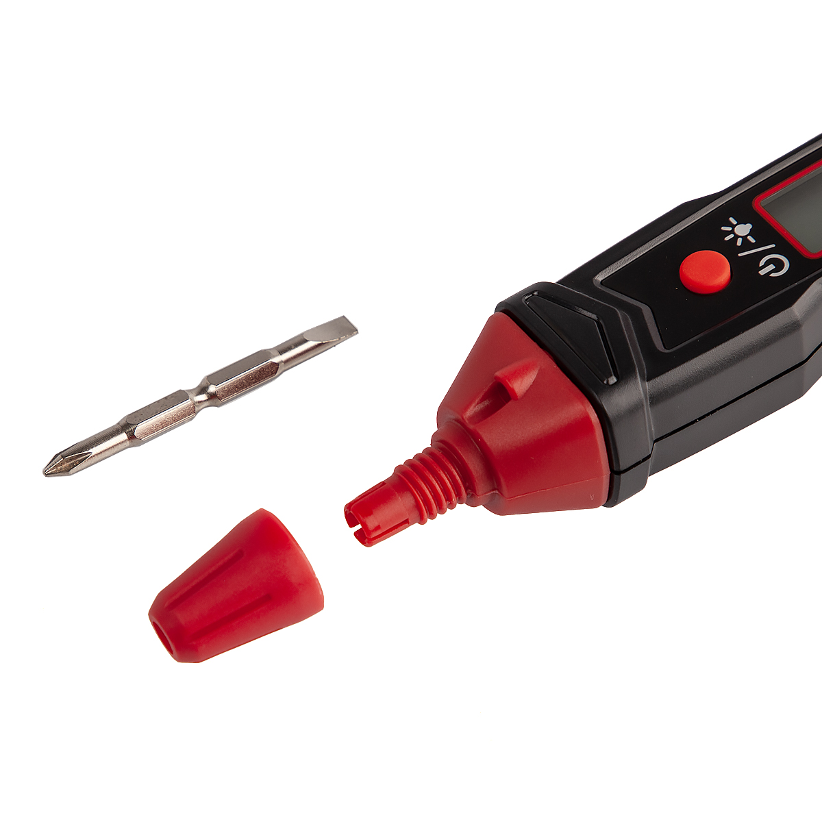 Сменный двусторонний наконечник (шлицевой SL и крестовой PH) позволяет использовать прибор как универсальную отвёртку для работы с различными типами крепежа. Встроенный LED-фонарик подсветит рабочую зону в условиях слабого освещения. Клипса на корпусе обеспечивает удобное ношение.