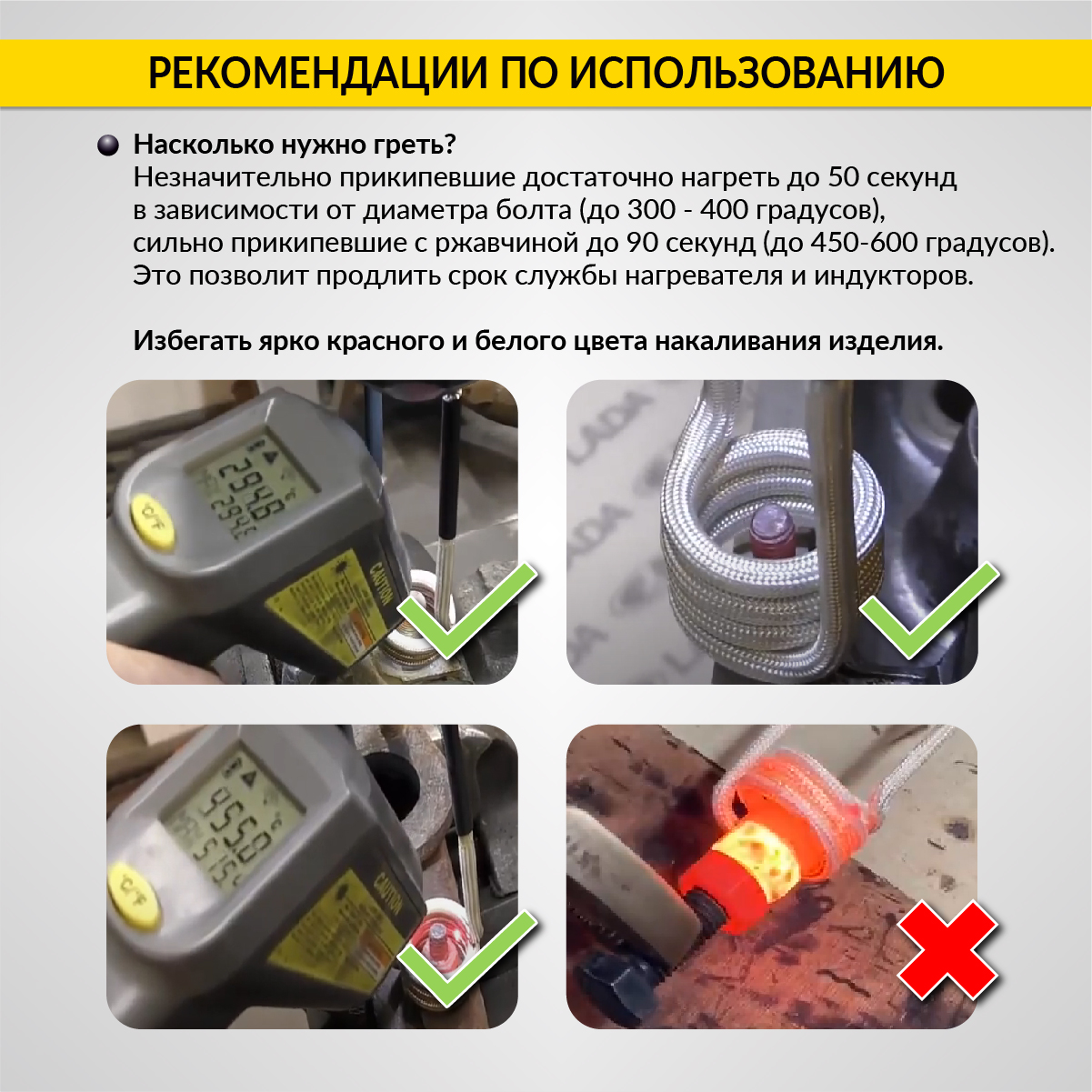 Индукционный беспламенный нагреватель IC-190 предназначен для быстрого и равномерного разогрева различных стальных деталей и соединений индукционным методом, без применения открытого огня. Нагреватель используется в слесарных мастерских для раскручивания заклиненных соединений, также может применяться для выполнения некоторых видов кузовных работ: выпрямление мелких вмятин, демонтаж приклеенных на металл спойлеров, молдингов и наклеек, удаление покрытия с металлических поверхностей и др.