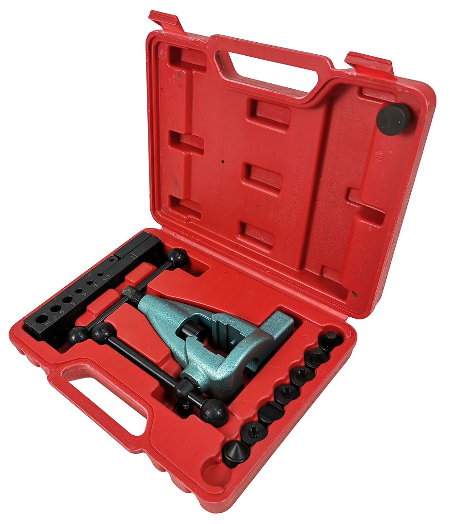 Инструмент для развальцовки труб ТА-М1081 это набор профессиональных приспособлений для изгибания медных и латунных трубок. Позволяет обжимать трубки различных систем: охлаждения, кондиционирования, водопроводные и газовые.