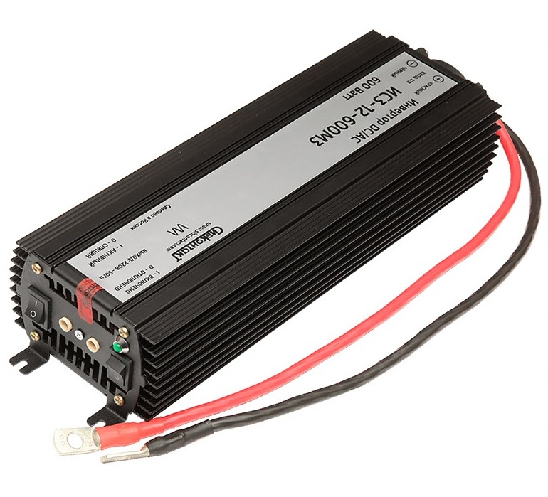 Инвертор ИС3-12-600М3 (преобразователь напряжения) преобразует постоянное напряжение аккумулятора 12 В в переменное синусоидальное напряжение 220 В и частотой 50 Гц. Качественные характеристики такого напряжения аналогичны характеристикам напряжения в бытовой сети.