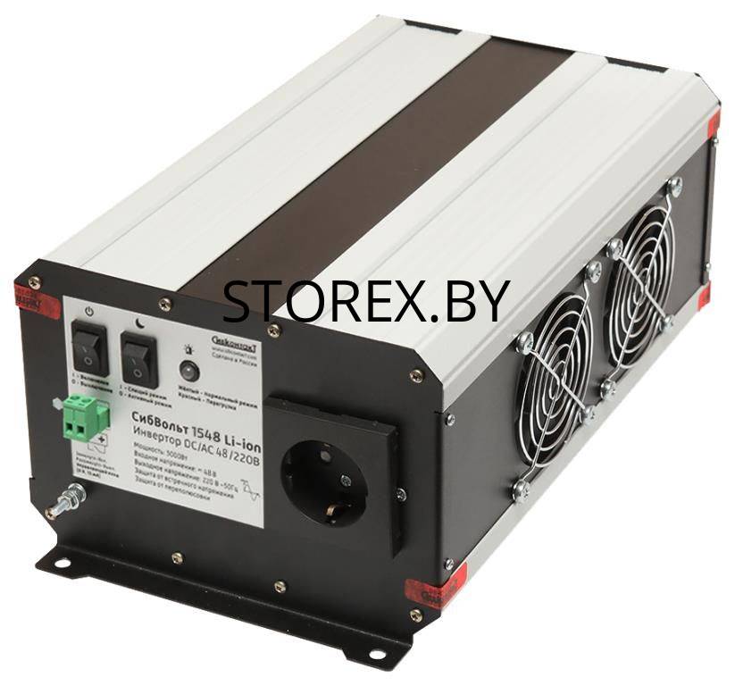 Инвертор СибВольт 1548 Li-ion (преобразователь напряжения) преобразует постоянное напряжение аккумулятора 48В в переменное синусоидальное напряжение 220 В и частотой 50 Гц. Качественные характеристики такого напряжения аналогичны характеристикам напряжения в бытовой сети.