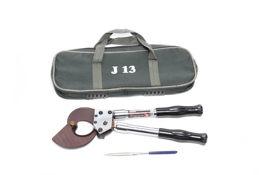 Кабелерез ручной с телескопическими ручками в сумке используется для перерезания стальных кабелей 150мм2, медных и алюминиевых кабелей с площадью сечения 720мм2. Инструмент оснащен парой трубчатых рукояток. Они хорошо справляются с нагрузкой, не деформируются и не сгибаются. Это позволяет работать с большим усилием. Специальная форма лезвия облегчает резку без расплющивания кабеля. Конструкция кабелереза оснащена телескопическими рукоятками и надежным храповым механизмом. Лезвия из кованой стали легко режут и оставляют качественный и чистый срез. Удобные телескопические рукоятки кабелереза помогают совершать работы на расстоянии и даже в самых стесненных условиях. Для удобной транспортировки и хранения кабелерез упакован в сумку, которая защитит инструмент и поможет сохранить его надолго в отличном состоянии.