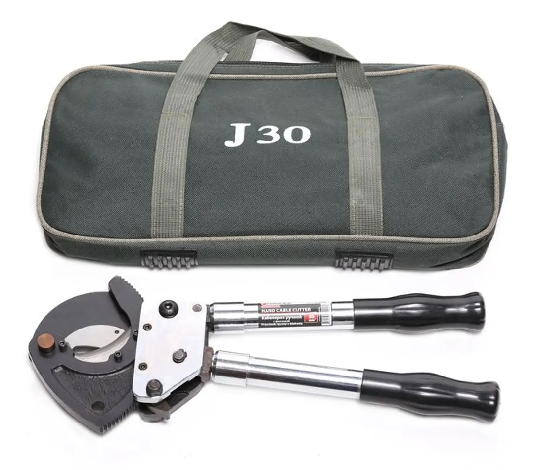 Кабелерез ручной с телескопическими ручками в сумке используется для перерезания стальных кабелей 100мм2, медных и алюминиевых кабелей с площадью сечения 620мм2. Инструмент оснащен парой трубчатых рукояток. Они хорошо справляются с нагрузкой, не деформируются и не сгибаются. Это позволяет работать с большим усилием. Специальная форма лезвия облегчает резку без расплющивания кабеля. Конструкция кабелереза оснащена телескопическими рукоятками и надежным храповым механизмом. Лезвия из кованой стали легко режут и оставляют качественный и чистый срез. Удобные телескопические рукоятки кабелереза помогают совершать работы на расстоянии и даже в самых стесненных условиях. Для удобной транспортировки и хранения кабелерез упакован в сумку, которая защитит инструмент и поможет сохранить его надолго в отличном состоянии.