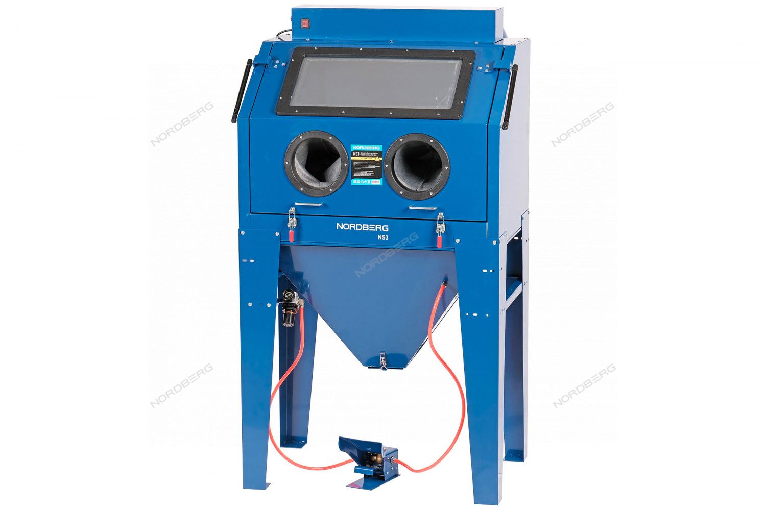 Пескоструйная камера NORDBERG NS3 для обработки воздушно-пескоструйным способом поверхностей изделий, снятия ржавчины, грунта, слоев краски, матирования.