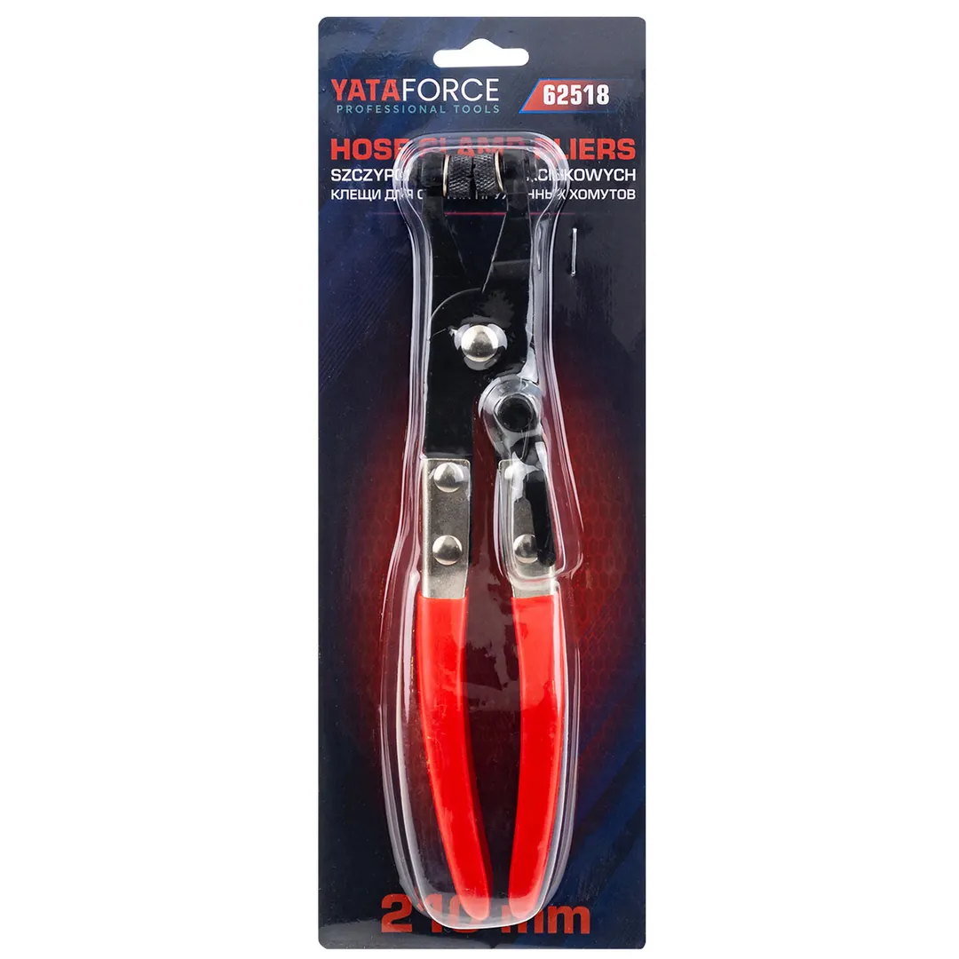 Клещи для снятия пружинных хомутов в металлическом корпусе оснащены ручным фиксатором положения, что позволяет держать клещи открытыми. Удобны для снятия нижнего патрубка радиатора. Применяются для установки или снятия хомутов в водяных и топливных шлангах транспортного средства. Щипцы совместимы с большинством самозажимных хомутов. Открытие челюсти - 0-45 мм., ширина челюсти - 11 мм. Поворотные губки обеспечивают доступ к труднодоступным хомутам. Благодаря прорезиненным накладкам на рукоятках инструмент не выскальзывает даже с влажной ладони. Клещи предназначены для работы с многоразовыми самозажимными хомутами топливных, масляных и водяных шлангов. Длина 215 мм.