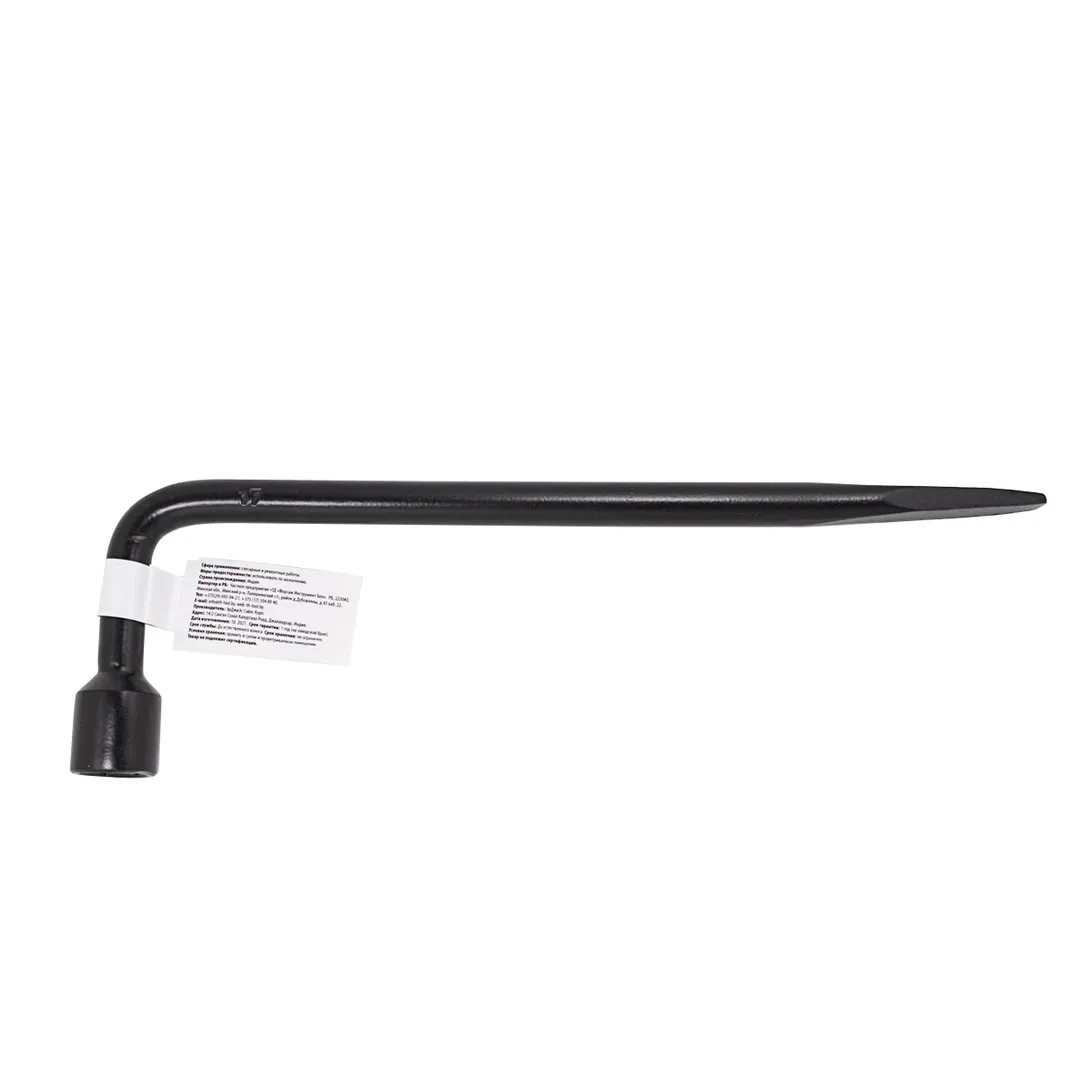 Ключ балонный Г-образный 17мм (диаметр 16мм) L-300мм является необходимым и даже незаменимым инструментом для ремонта колеса. Баллонным ключом называется гаечный ключ торцового типа, которым откручивают или закручивают гайки при работе с автомобильными колесами. С помощью него водитель сможет самостоятельно поменять колесо, затянуть и установить крепёж (болты, гайки). Данный инструмент изогнут практически на 90 градусов, что обеспечивает больший крутящий момент. С одной стороны Г-образного ключа расположена торцевая головка , с другой - монтажная лопатка, которая используется при разбортировании колеса, а также как монтировка. Ключ можно также применять и при сборке различных конструкций с применение болтовых (резьбовых) соединений, при ремонте других деталей авто. Гаечный ключ пригоден для использования как в собственном гараже и в быту, так и на специализированной СТО.