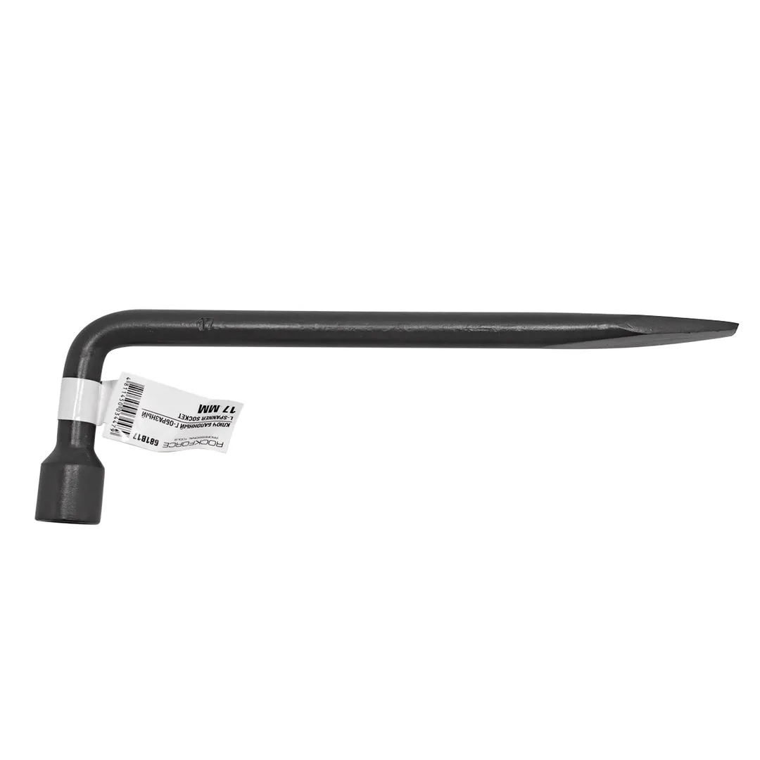 Ключ балонный Г-образный 17мм (диаметр 16мм) L-300мм является необходимым и даже незаменимым инструментом для ремонта колеса. Баллонным ключом называется гаечный ключ торцового типа, которым откручивают или закручивают гайки при работе с автомобильными колесами. С помощью него водитель сможет самостоятельно поменять колесо, затянуть и установить крепёж (болты, гайки). Данный инструмент изогнут практически на 90 градусов, что обеспечивает больший крутящий момент. С одной стороны Г-образного ключа расположена торцевая головка , с другой - монтажная лопатка, которая используется при разбортировании колеса, а также как монтировка. Ключ можно также применять и при сборке различных конструкций с применение болтовых (резьбовых) соединений, при ремонте других деталей авто. Гаечный ключ пригоден для использования как в собственном гараже и в быту, так и на специализированной СТО.