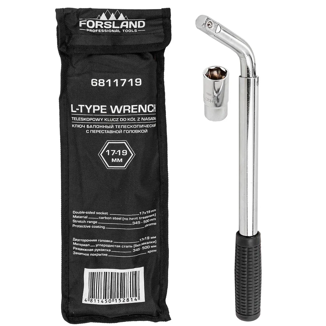Ключ балонный Г-образный телескопический является необходимым и даже незаменимым инструментом для ремонта колеса. Баллонным ключом называется гаечный ключ торцового типа, которым откручивают или закручивают гайки при работе с автомобильными колесами. С помощью него водитель сможет самостоятельно поменять колесо, затянуть и установить крепёж (болты, гайки). Данный инструмент изогнут на 120 градусов. Телескопическая конструкция позволяет осуществлять работу с крепежом в труднодоступных местах, а также позволяет прикладывать большее усилие при закручивании/откручивании за счет увеличенной длины рычага. С одной стороны Г-образного ключа расположен посадочный квадрат 1/2", с другой - прорезиненная рукоятка, которая обеспечивает комфорт при использовании. Ключ можно также применять и при сборке различных конструкций с применение болтовых (резьбовых) соединений, при ремонте других деталей авто. Гаечный ключ пригоден для использования как в собственном гараже и в быту, так и на специализированной СТО. В комплекте с к