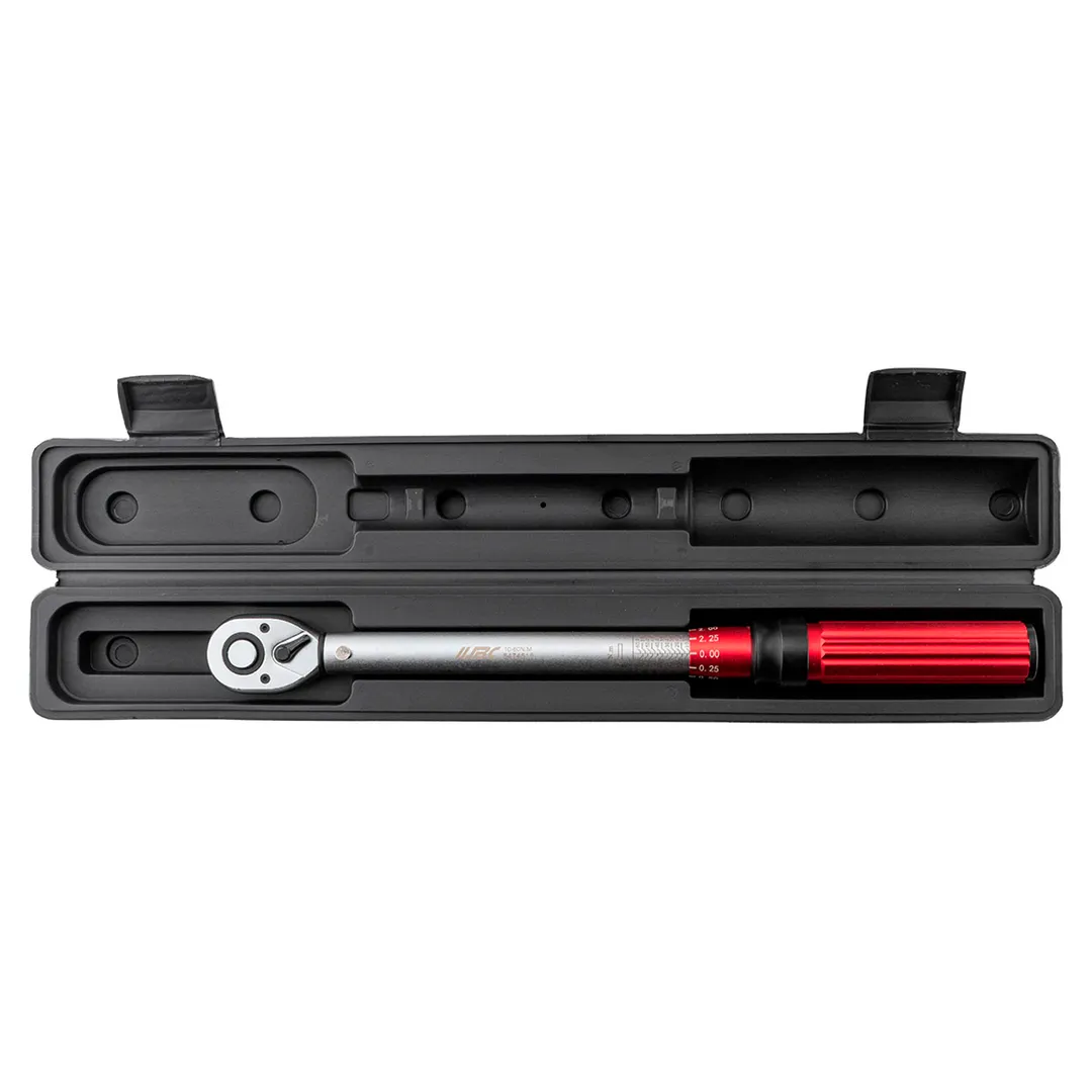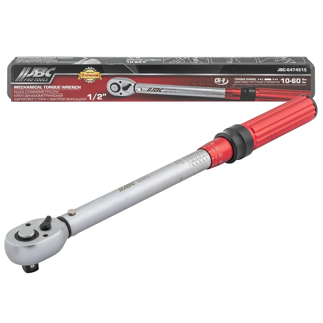 Динамометрический ключ щелчкового типа JBC с быстрой фиксацией и посадочным квадратом 1/2" предназначен для точной затяжки резьбовых соединений с контролируемым усилием в диапазоне 10-60Нм. При достижении установленного момента ключ издаёт характерный щелчок, что обеспечивает надёжную индикацию правильной затяжки и предотвращает повреждение деталей. Быстросъёмная головка и реверсивный храповой механизм позволяют удобно работать и оперативно менять насадки. Инструмент подходит для использования в автосервисе, бытовой техники, велосипедов и в других областях, где требуется точное соблюдение крутящего момента.