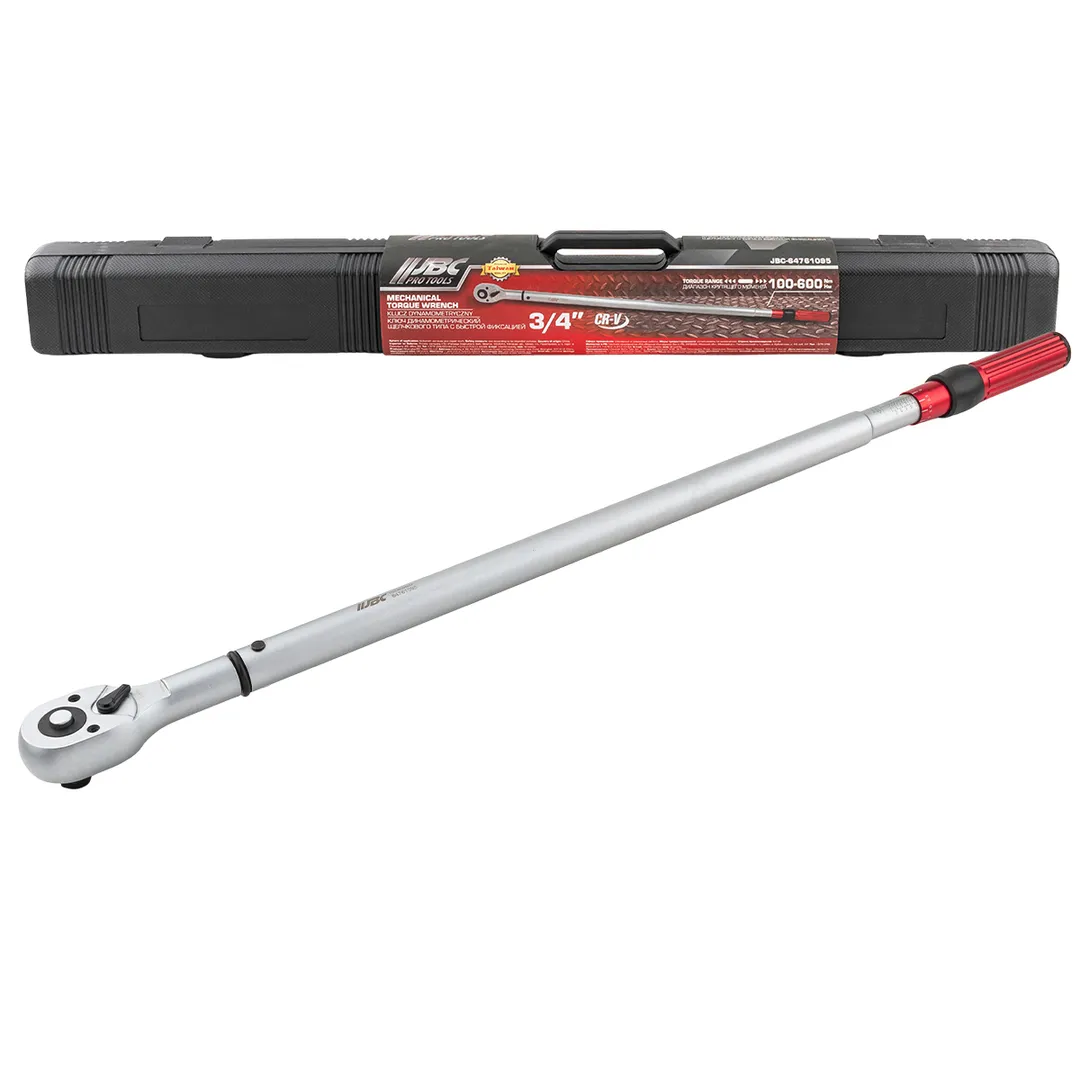 Динамометрический ключ щелчкового типа JBC с быстрой фиксацией и посадочным квадратом 3/4" предназначен для точной затяжки резьбовых соединений с контролируемым усилием в диапазоне 100-600Нм. При достижении установленного момента ключ издаёт характерный щелчок, что обеспечивает надёжную индикацию правильной затяжки и предотвращает повреждение деталей. Быстросъёмная головка и реверсивный храповой механизм позволяют удобно работать и оперативно менять насадки. Инструмент подходит для использования в автосервисе и в других областях, где требуется точное соблюдение крутящего момента.