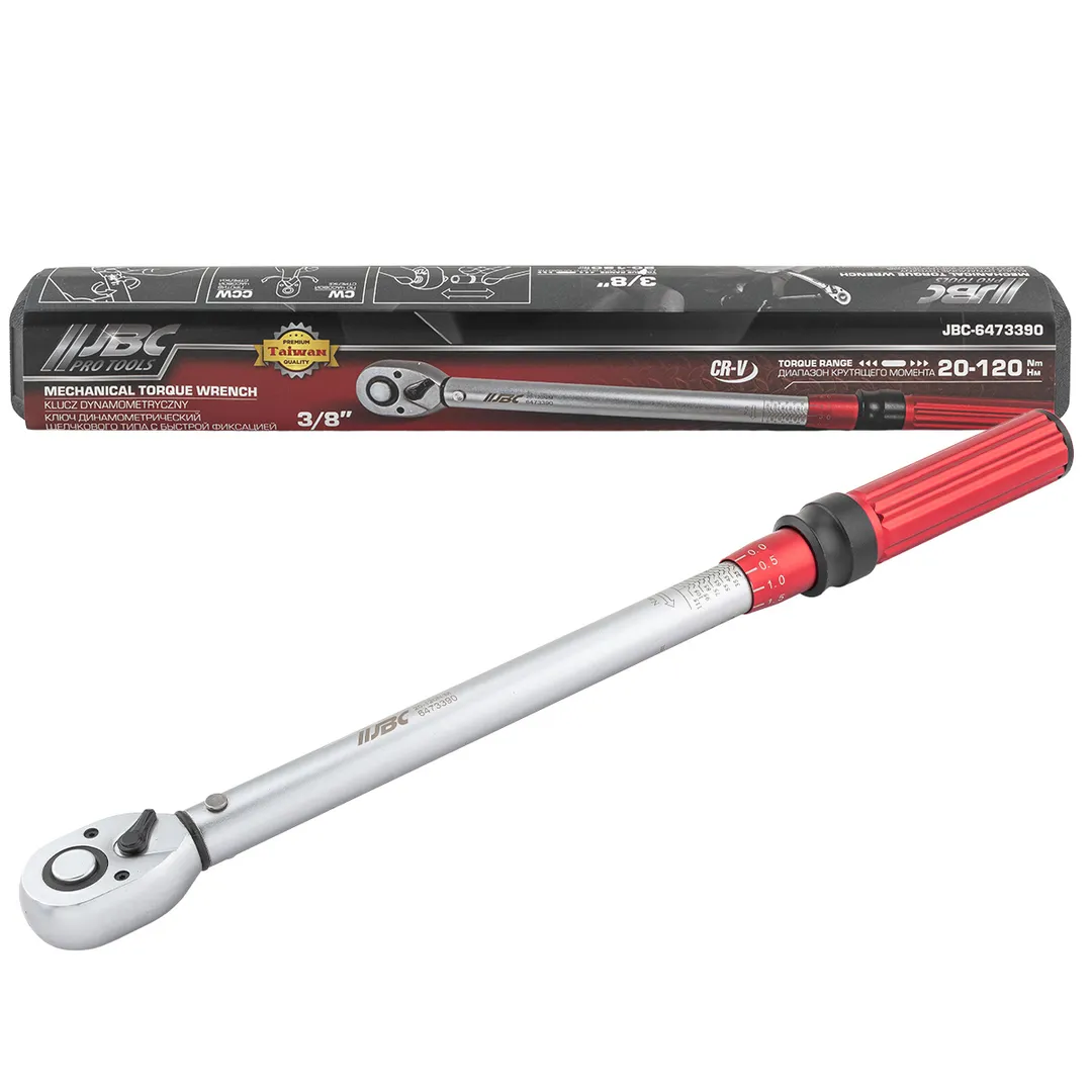 Динамометрический ключ щелчкового типа JBC с быстрой фиксацией и посадочным квадратом 3/8" предназначен для точной затяжки резьбовых соединений с контролируемым усилием в диапазоне 20-120Нм. При достижении установленного момента ключ издаёт характерный щелчок, что обеспечивает надёжную индикацию правильной затяжки и предотвращает повреждение деталей. Быстросъёмная головка и реверсивный храповой механизм позволяют удобно работать в ограниченном пространстве и оперативно менять насадки. Инструмент подходит для использования в автосервисе, бытовой техники, велосипедов и в других областях, где требуется точное соблюдение крутящего момента.