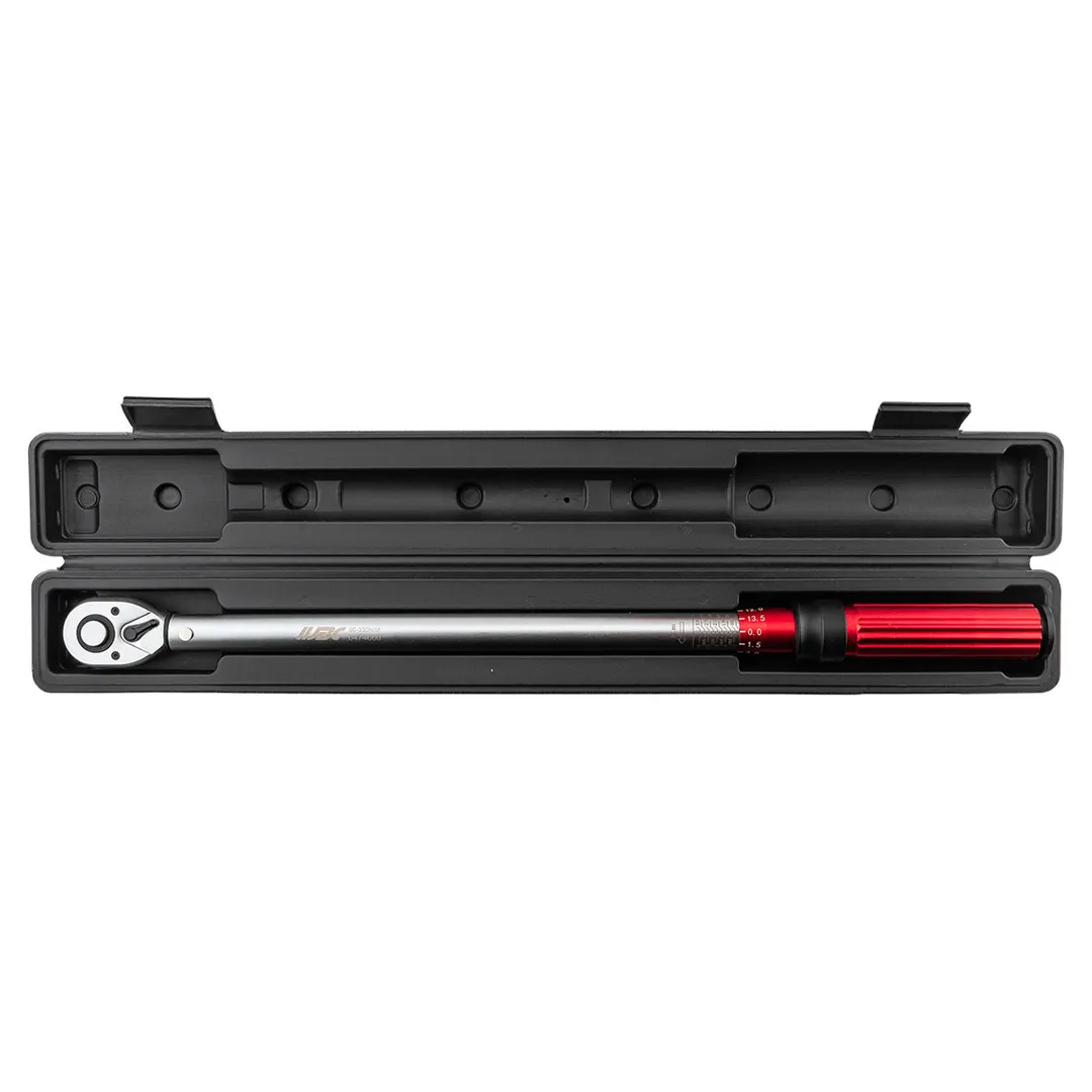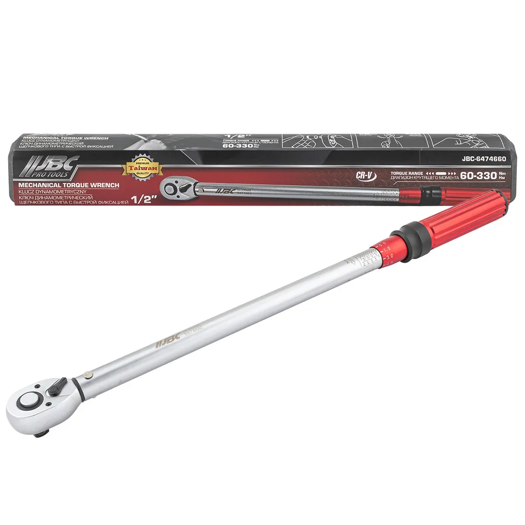 Динамометрический ключ щелчкового типа JBC с быстрой фиксацией и посадочным квадратом 1/2" предназначен для точной затяжки резьбовых соединений с контролируемым усилием в диапазоне 60-330Нм. При достижении установленного момента ключ издаёт характерный щелчок, что обеспечивает надёжную индикацию правильной затяжки и предотвращает повреждение деталей. Быстросъёмная головка и реверсивный храповой механизм позволяют удобно работать и оперативно менять насадки. Инструмент подходит для использования в автосервисе, бытовой техники, велосипедов и в других областях, где требуется точное соблюдение крутящего момента.