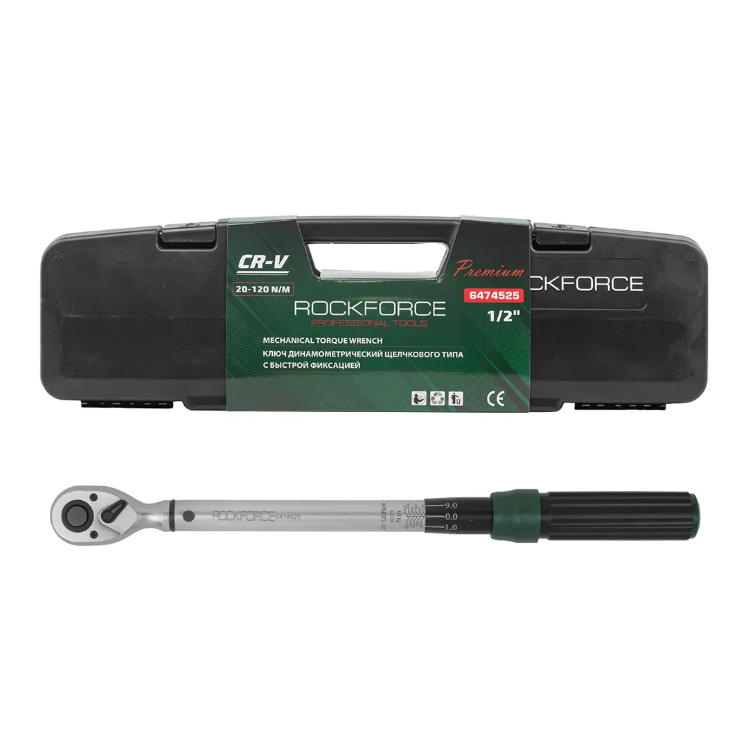 Ключ динамометрический щелчкового типа с быстрой фиксацией "Premium", 1/2", 20-120Нм применяется в сфере ремонта автомобилей, а также различных узлов, механизмов и деталей, в промышленности, строительной сфере и др. Трещоточный механизм имеет 72 зубца. Позволяет установить нужное усилие в правую и левую сторону. Применяется при затягивании крепежа с регулируемым значением крутящего момента. Износостойкая нескользящая удобная ручка. Присоединительный квадрат: 1/2"; Крутящий момент : 20-120 Нм; Правосторонний / Левосторонний; Изготовлен из хром-ванадиевой стали (CR-V); Для удобства хранения и транспортировки поставляется в крепком ударопрочном футляре.