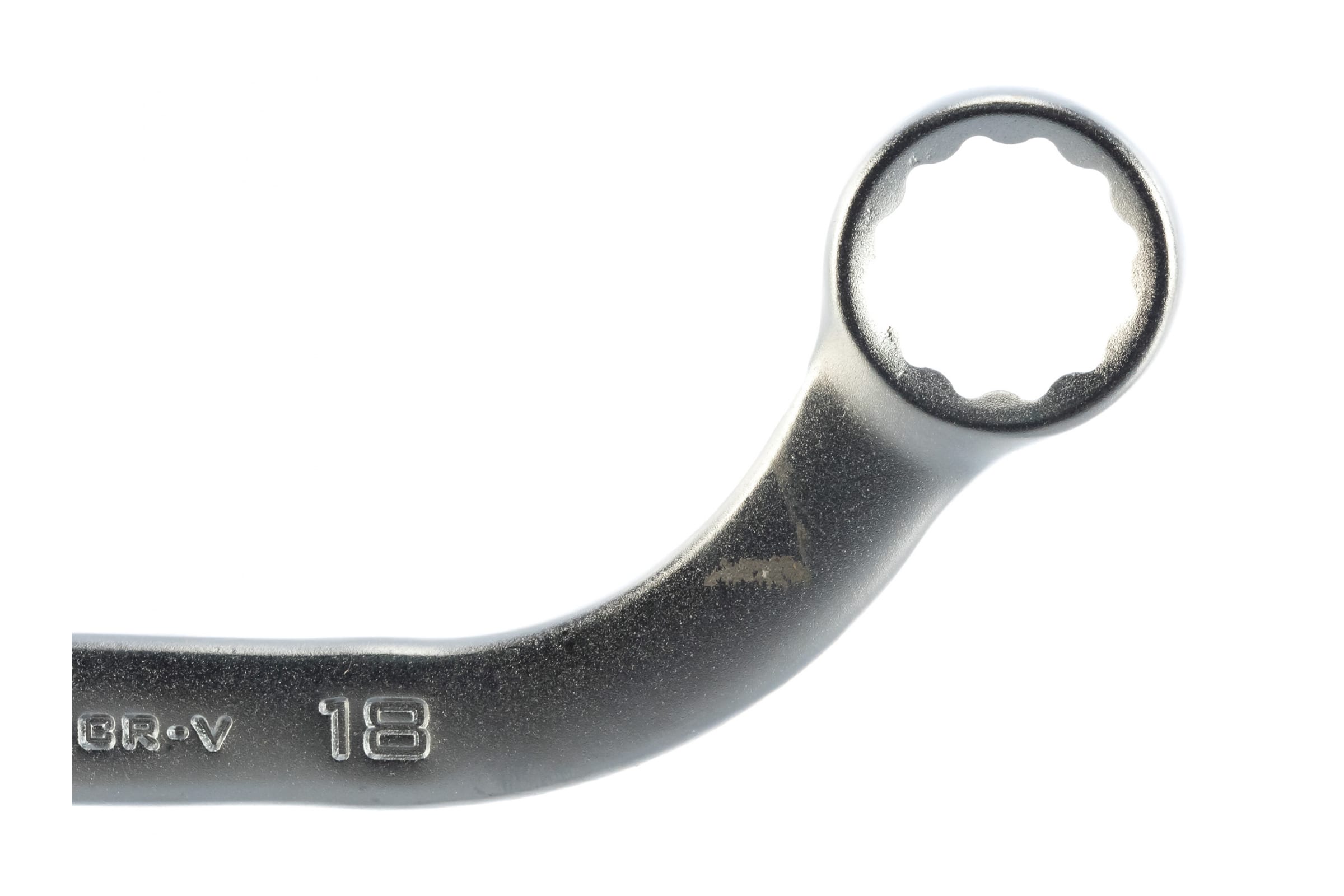Гаечный ключ, разновидность накидного, с кольцевой 12-гранной рабочей частью без отгиба и смещения. Тело ключа изогнуто в виде буквы «С». Изготовлены из хромованадиевой стали, закалены, имеют хромоникелевое покрытие и финишную отделку «сатин».
