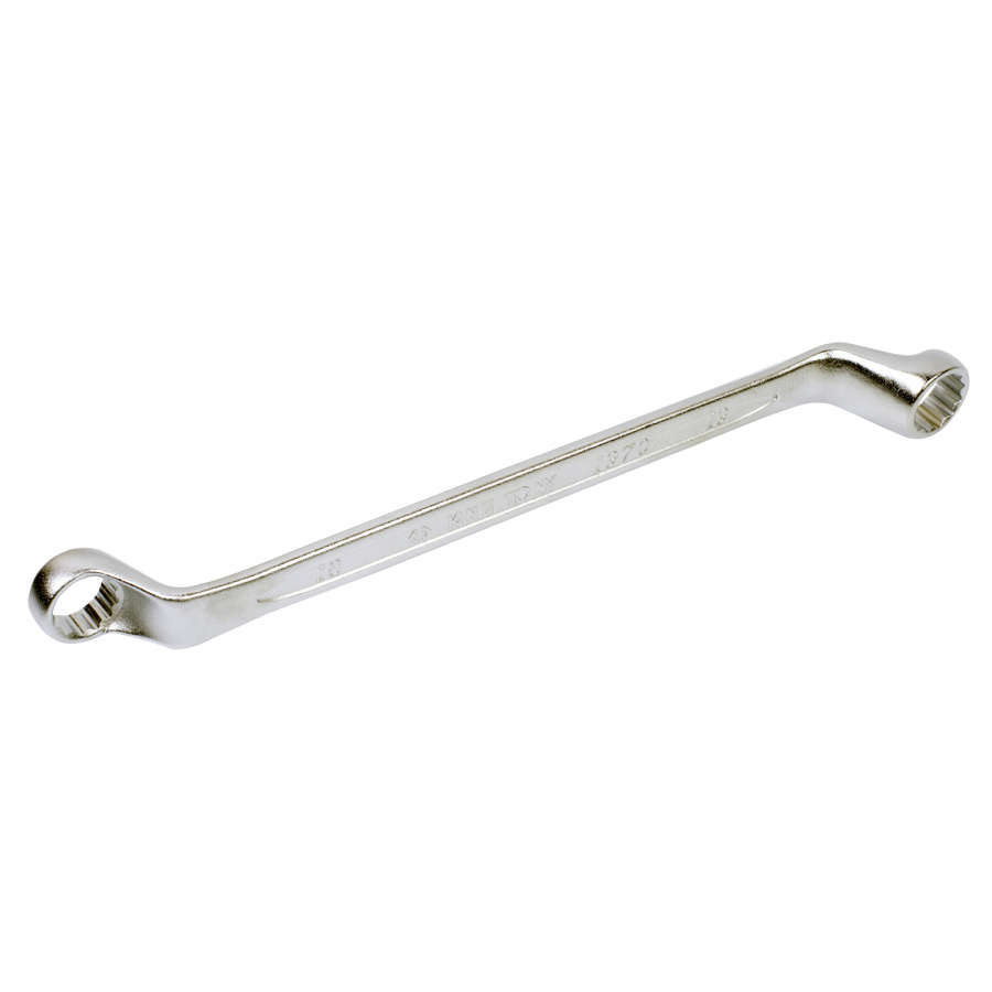 Ключи относятся к накидному типу, двухразмерные, имеют 12-гранный рабочий профиль и специальный изгиб под углом 75°, позволяющий работать с крепежом в углублении или других труднодоступных местах.