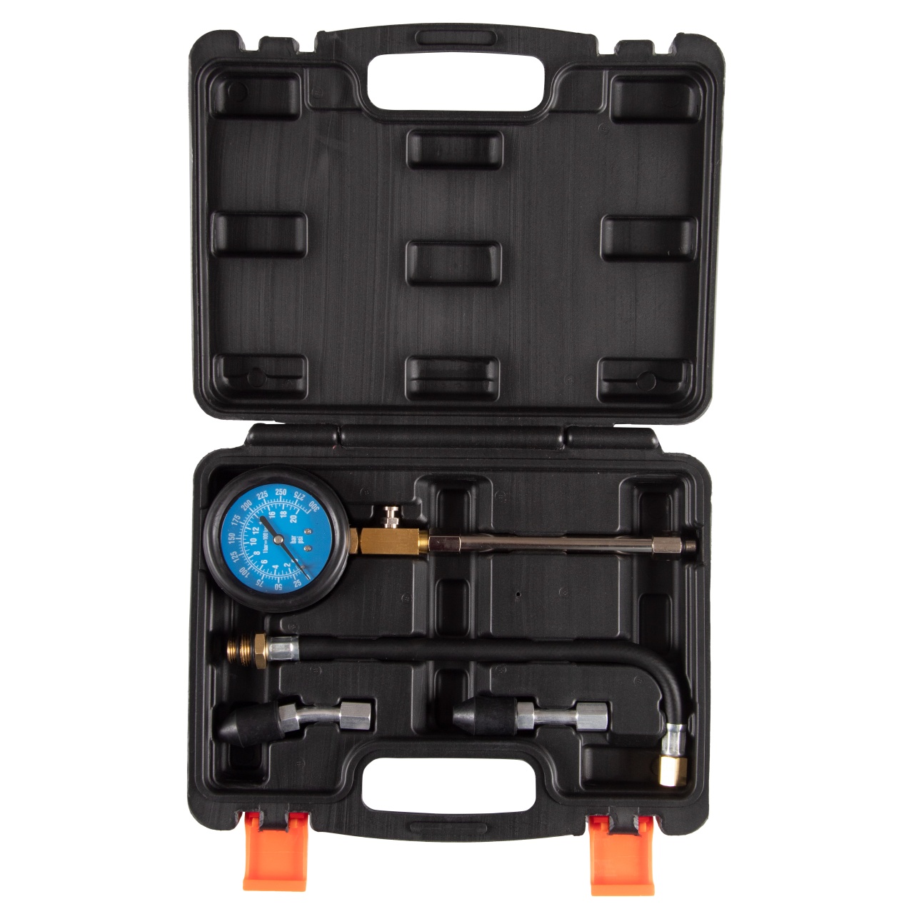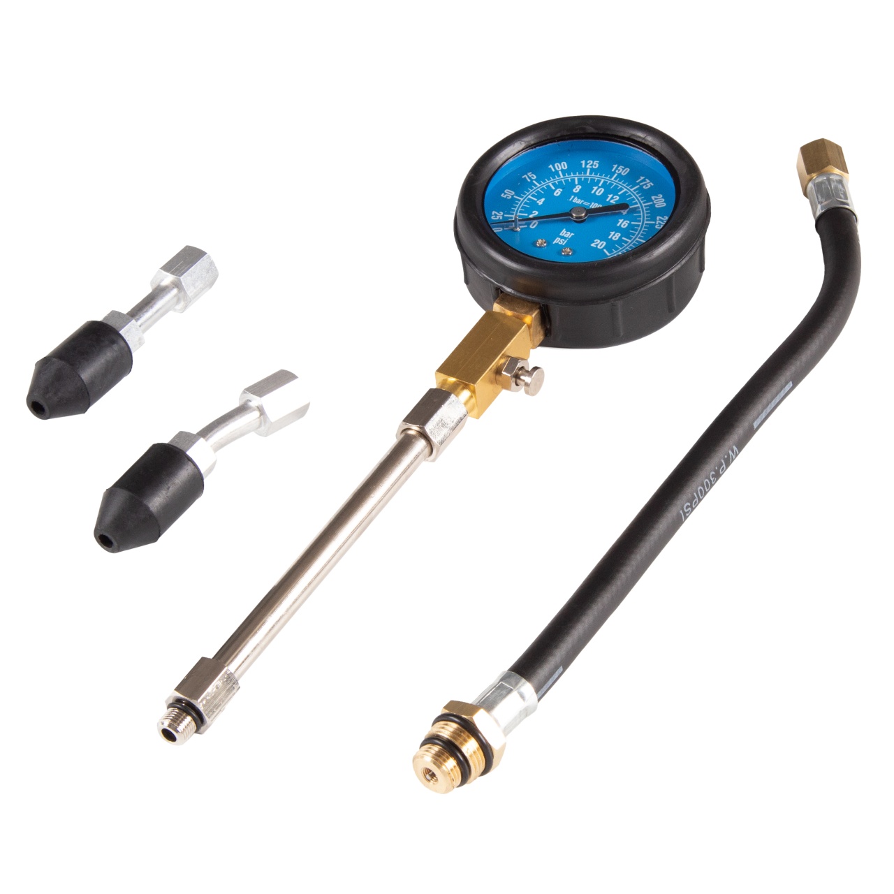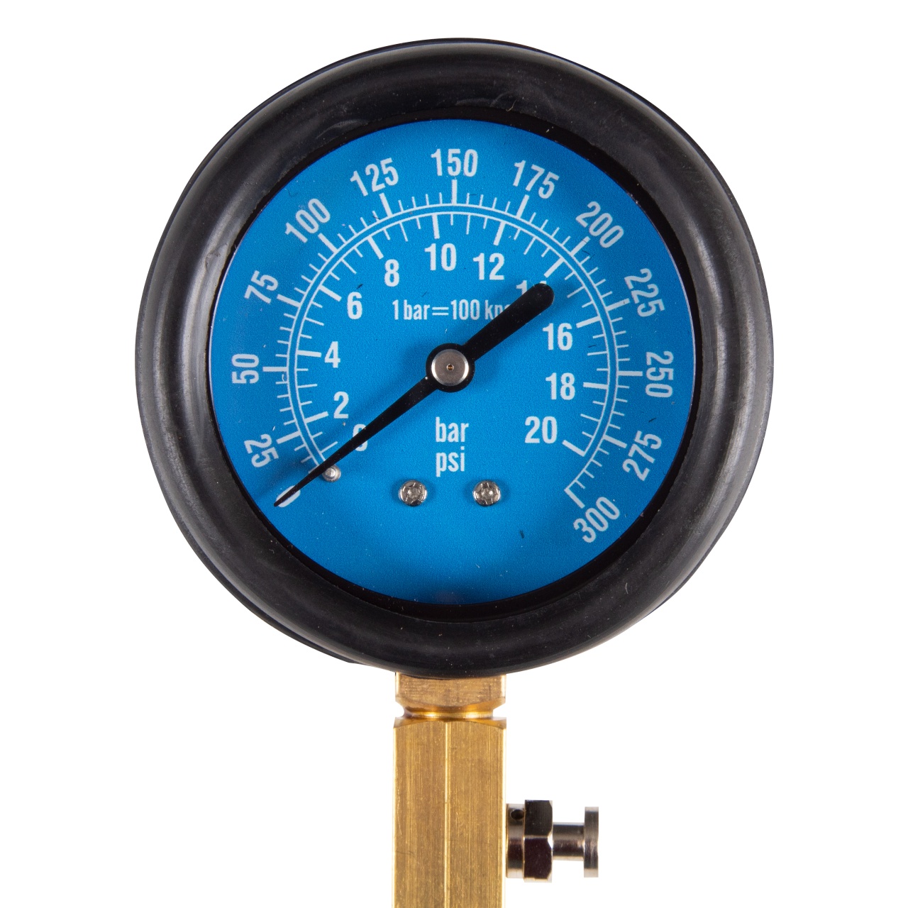 – Манометр 0-21 бар (300 psi) с клапаном фиксации компрессии и кнопкой сброса