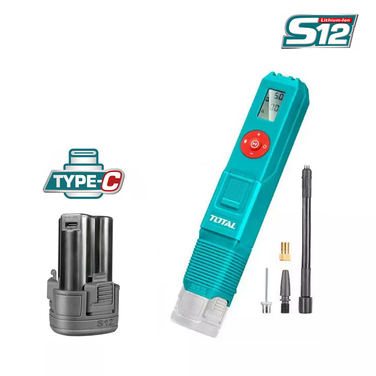 - Аккумуляторный насос с питанием от АКБ 12 вольт системы TOTAL S12/USB type C.