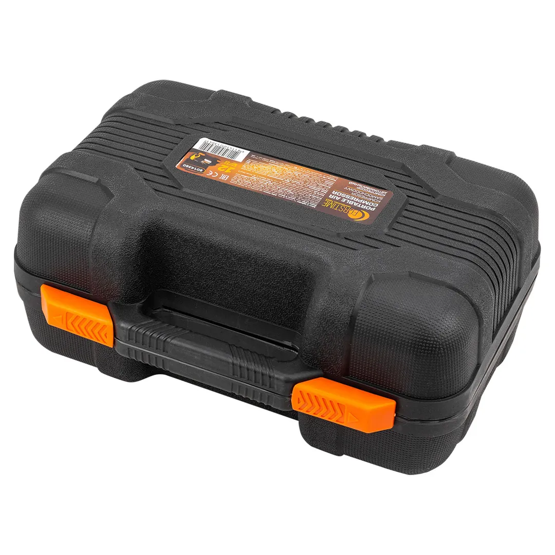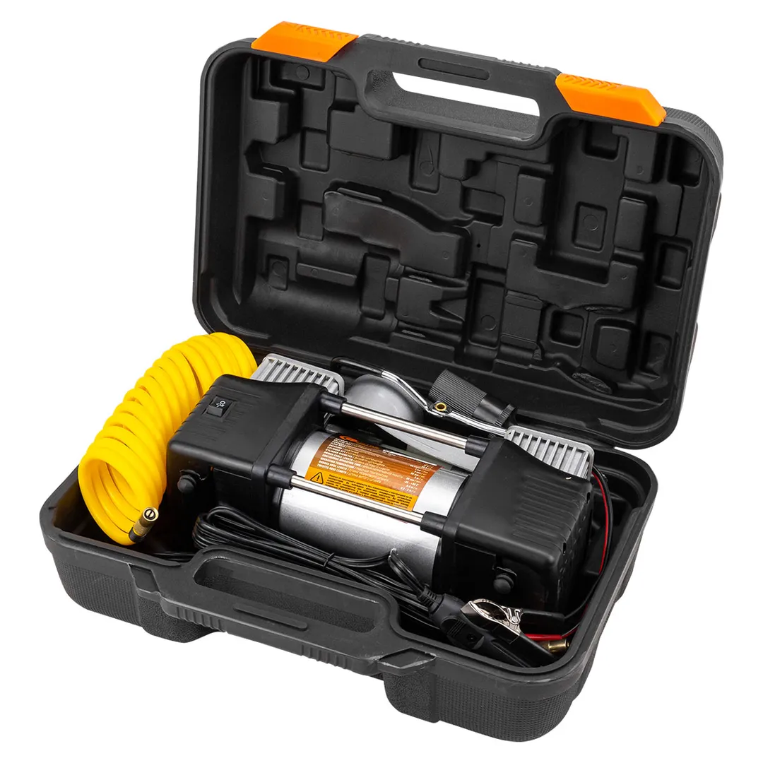 Компрессор поршневой автомобильный двухцилиндровый в пластиковом кейсе с аналоговым манометром - это лучшее решение для быстрой и удобной подкачки шин в дорожных условиях. Насос рассчитан на длительную эксплуатацию в различных климатических условиях. Компрессор оснащен встроенным фонариком, что позволяет использовать его в условиях пониженной освещенности. Прочный пластиковый кейс дает возможность удобно переносить и хранить компрессор, а также надежно защищает его от различных механических повреждений. В комплекте представлены не только сам поршневой двухцилиндровый компрессор, но и воздушный шланг, а также различные сменные насадки, что позволяет использовать насос также и для накачки резиновых лодок, мячей и надувных матрасов.
