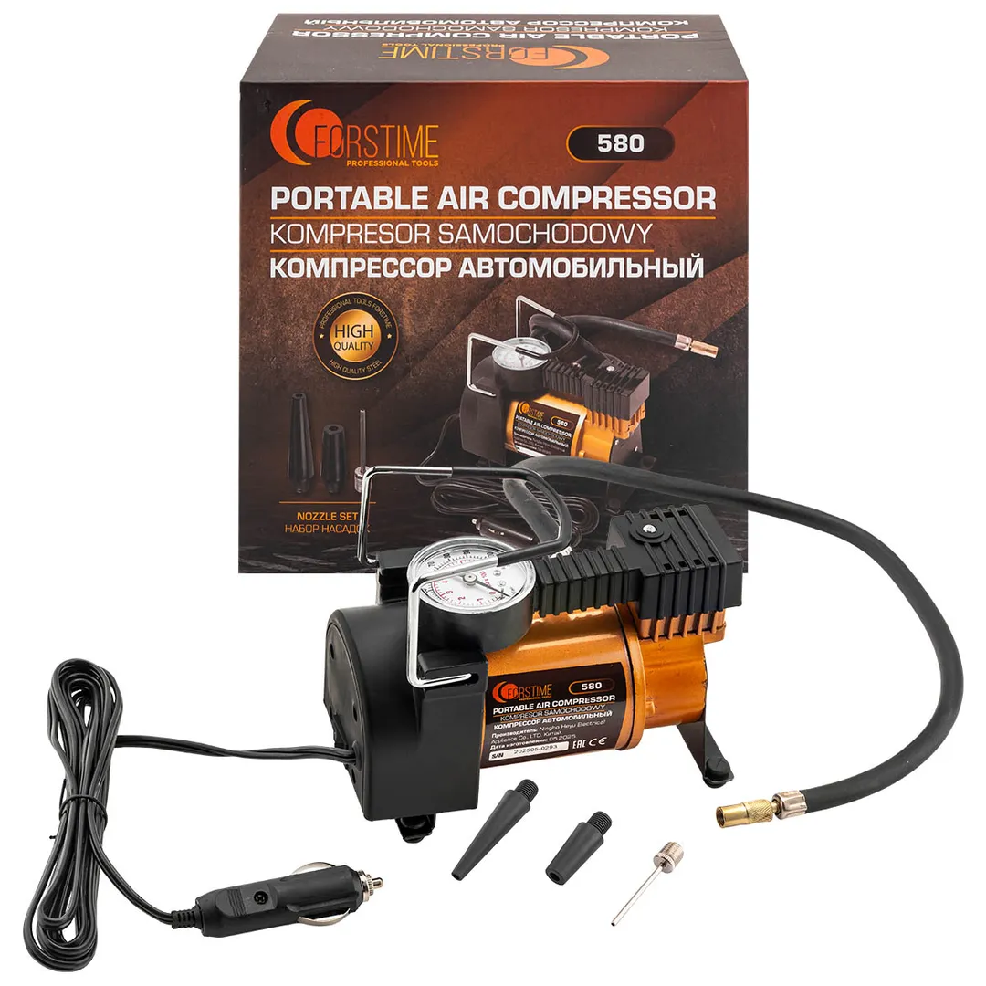 Компрессор поршневой автомобильный одноцилиндровый с аналоговым манометром - это лучшее решение для быстрой и удобной подкачки шин в дорожных условиях. Насос рассчитан на длительную эксплуатацию в различных климатических условиях. Переносная сумка дает возможность удобно переносить и хранить компрессор, а также защищает его от различных механических повреждений. В комплекте представлены не только сам поршневой одноцилиндровый компрессор, но и различные сменные насадки, что позволяет использовать насос также и для накачки резиновых лодок, мячей и надувных матрасов.