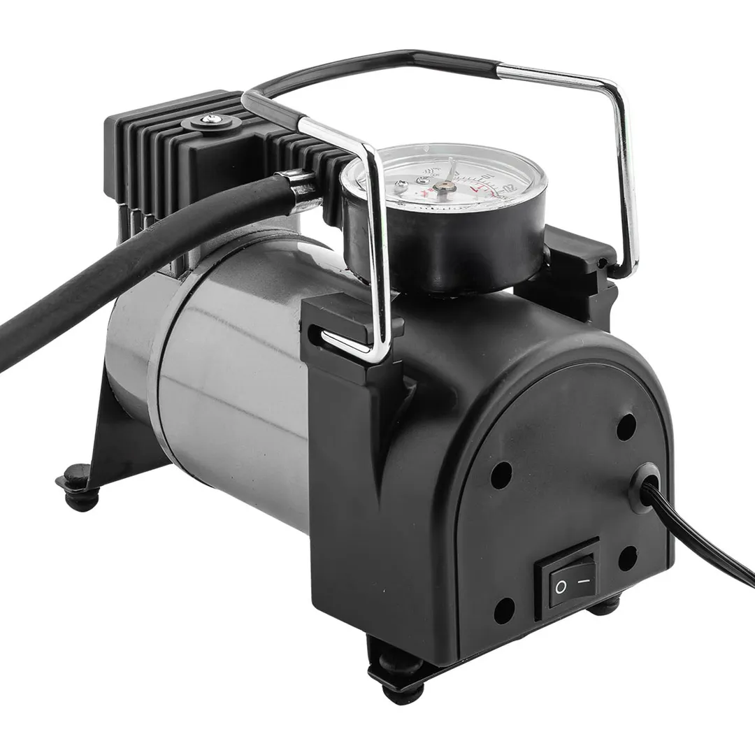 Компрессор поршневой автомобильный одноцилиндровый с аналоговым манометром - это лучшее решение для быстрой и удобной подкачки шин в дорожных условиях. Насос рассчитан на длительную эксплуатацию в различных климатических условиях. Переносная сумка дает возможность удобно переносить и хранить компрессор, а также защищает его от различных механических повреждений. В комплекте представлены не только сам поршневой одноцилиндровый компрессор, но и различные сменные насадки, что позволяет использовать насос также и для накачки резиновых лодок, мячей и надувных матрасов.