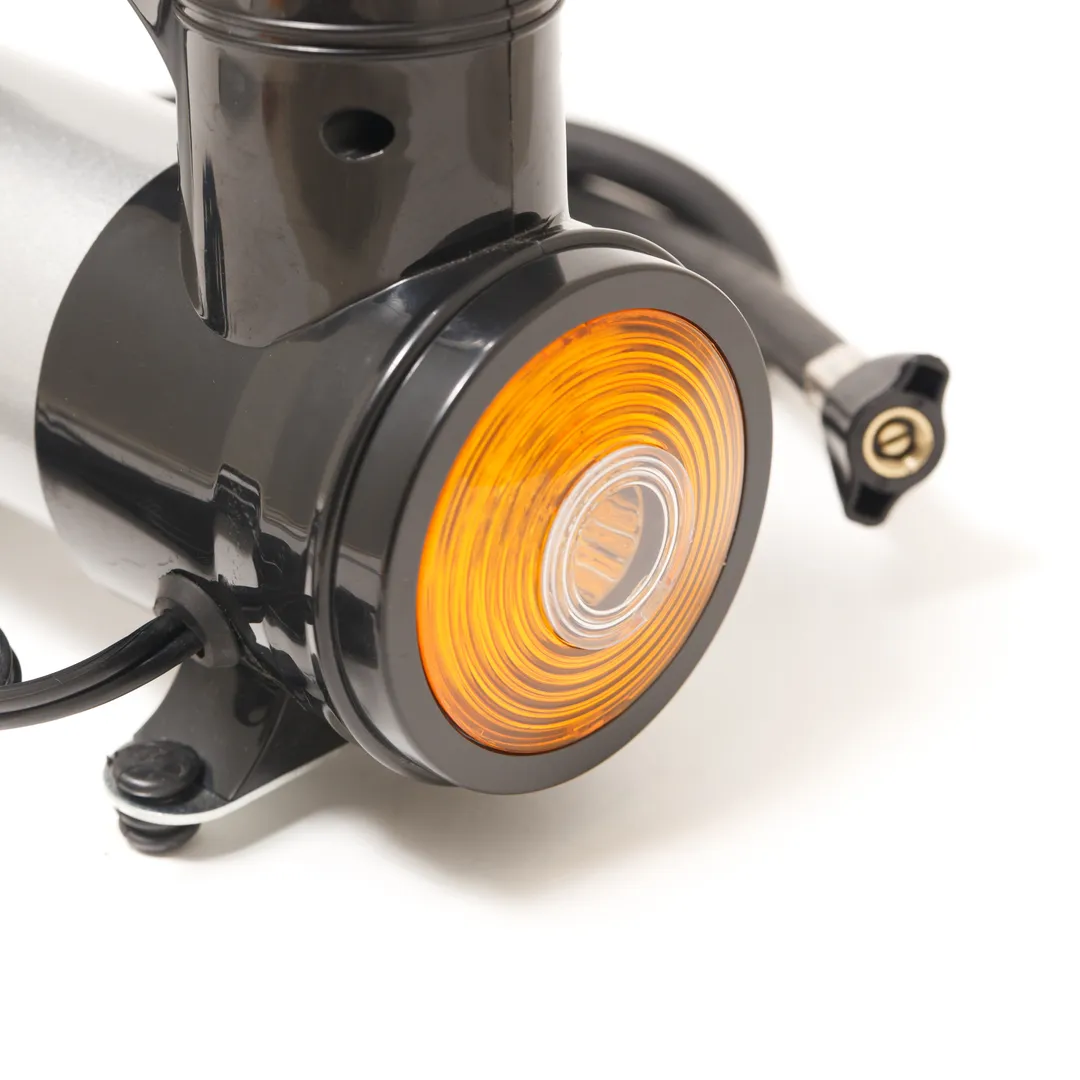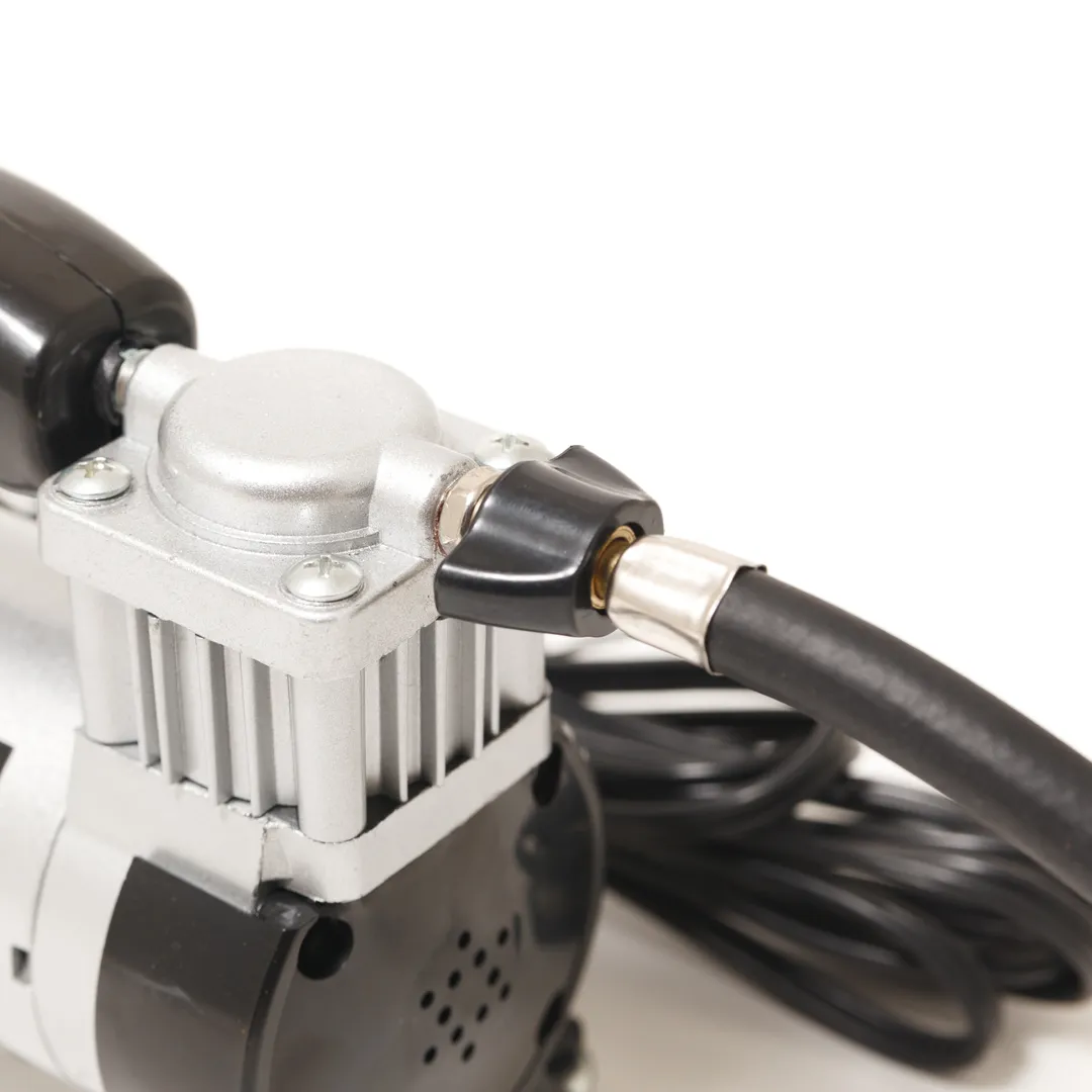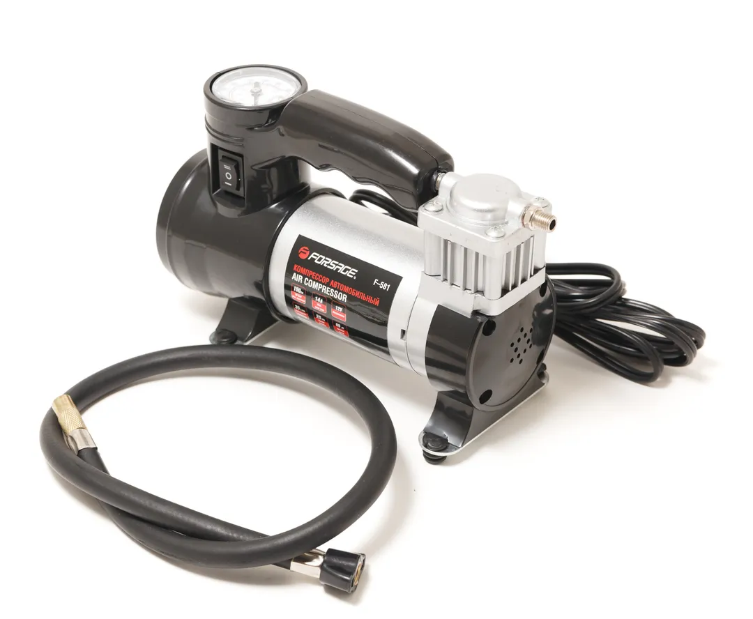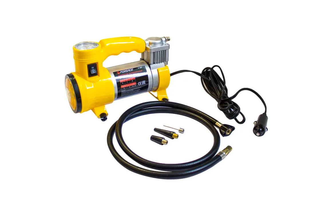 Автомобильный поршневой компрессор - незаменимый инструмент, который поможет вам путешествовать с комфортом. Основные детали корпуса и подшипники выполнены из металла, обеспечивая надежность и длительный срок службы поршневого компрессора. Компрессор также оснащен фонарем, что обеспечивает простоту работу в малоосвещенных помещениях или в темное время суток. В комплекте есть 3 сменные насадки для подкачки резиновых лодок, надувных матрасов и мячей. Штуцер на шланге винтовой высокого давления. В комплект также входит тканевая сумка для удобной транспортировки и хранения компрессора, а также для защиты от механических повреждений.