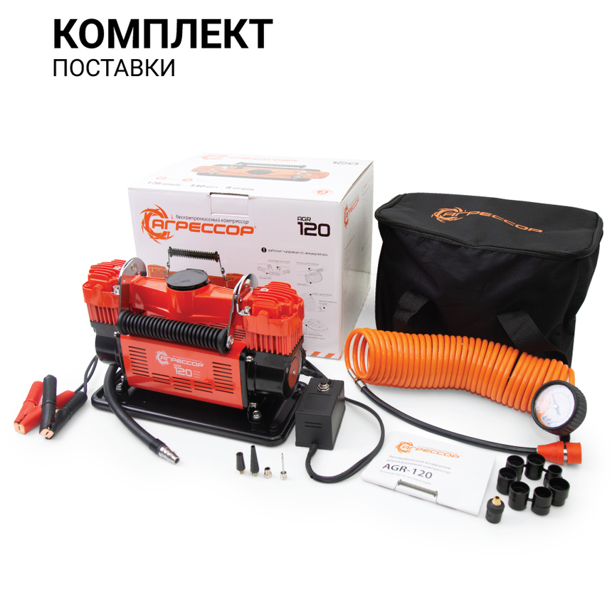 Автомобильный компрессор AGR-120 – одна из самых производительных моделей линейки АГРЕССОР. Идеальное устройство для накачивания колёс легкового автомобиля, внедорожника, лёгкого коммерческого транспорта, а так же лодок и других надувных изделий. Имеет производительность 120 л/мин и создаёт максимальное давление 10 Атм. Подключается к клеммам АКБ. Напряжение 12V, мощность 540W.