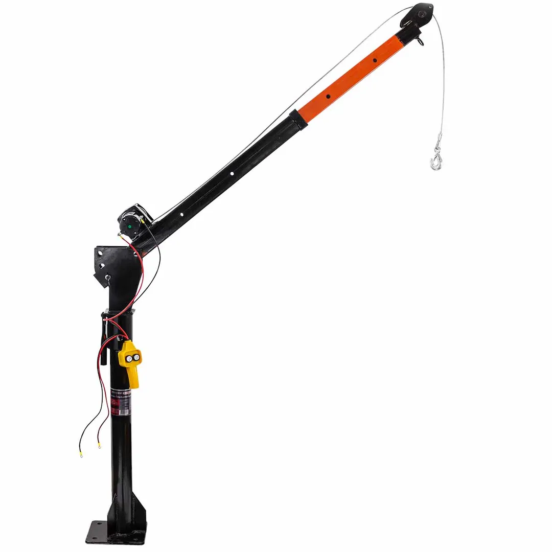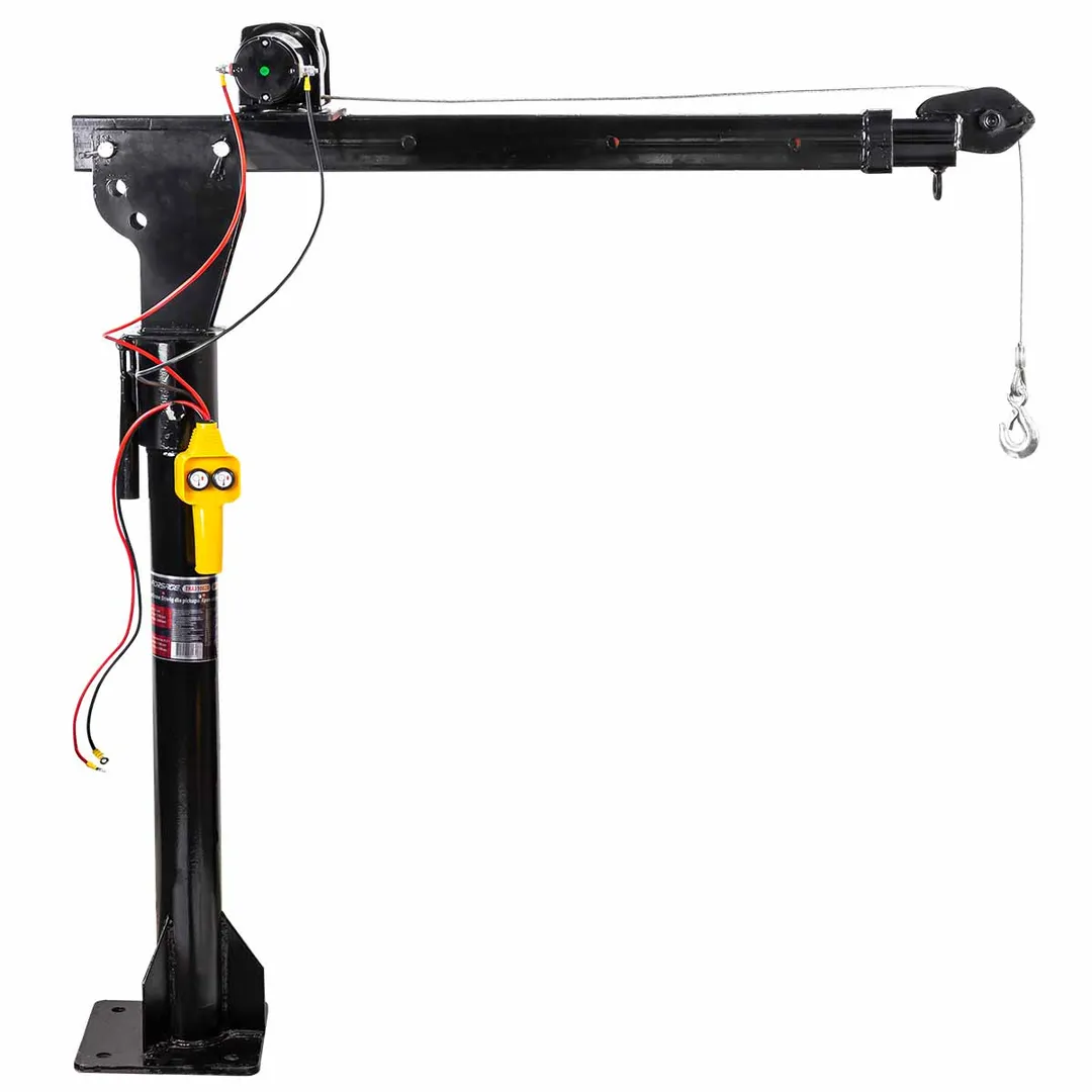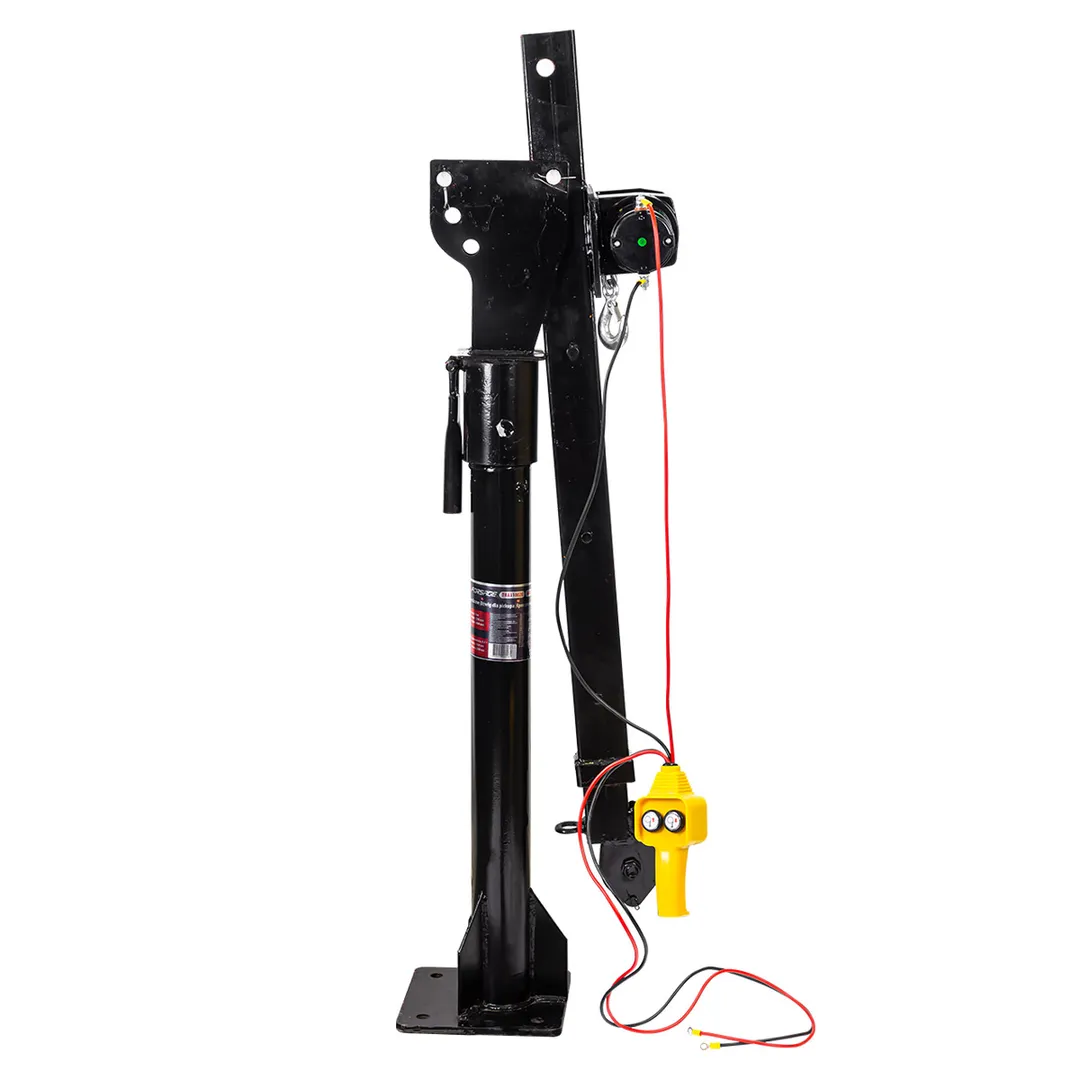 Кран электрический представляет собой стационарное устройство, предназначенное для подъема грузов. Применяется главным образом на станциях технического обслуживания для монтажа-демонтажа автомобильных агрегатов. Кран установлен на поворотной опоре и обладает регулируемой длиной стрелы, что увеличивает его маневренность и удобство при работе. Устройство оснащено автомобильной лебедкой на 12В, что обеспечивает высокую мощность и производительность крана. Эта модель также рассчитана на установку в кузов транспортного средства (пикап, эвакуатор и т.п.).