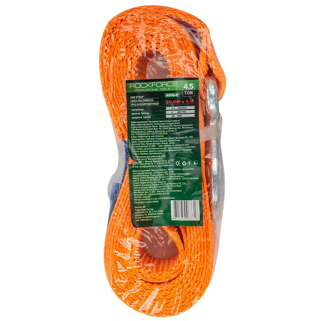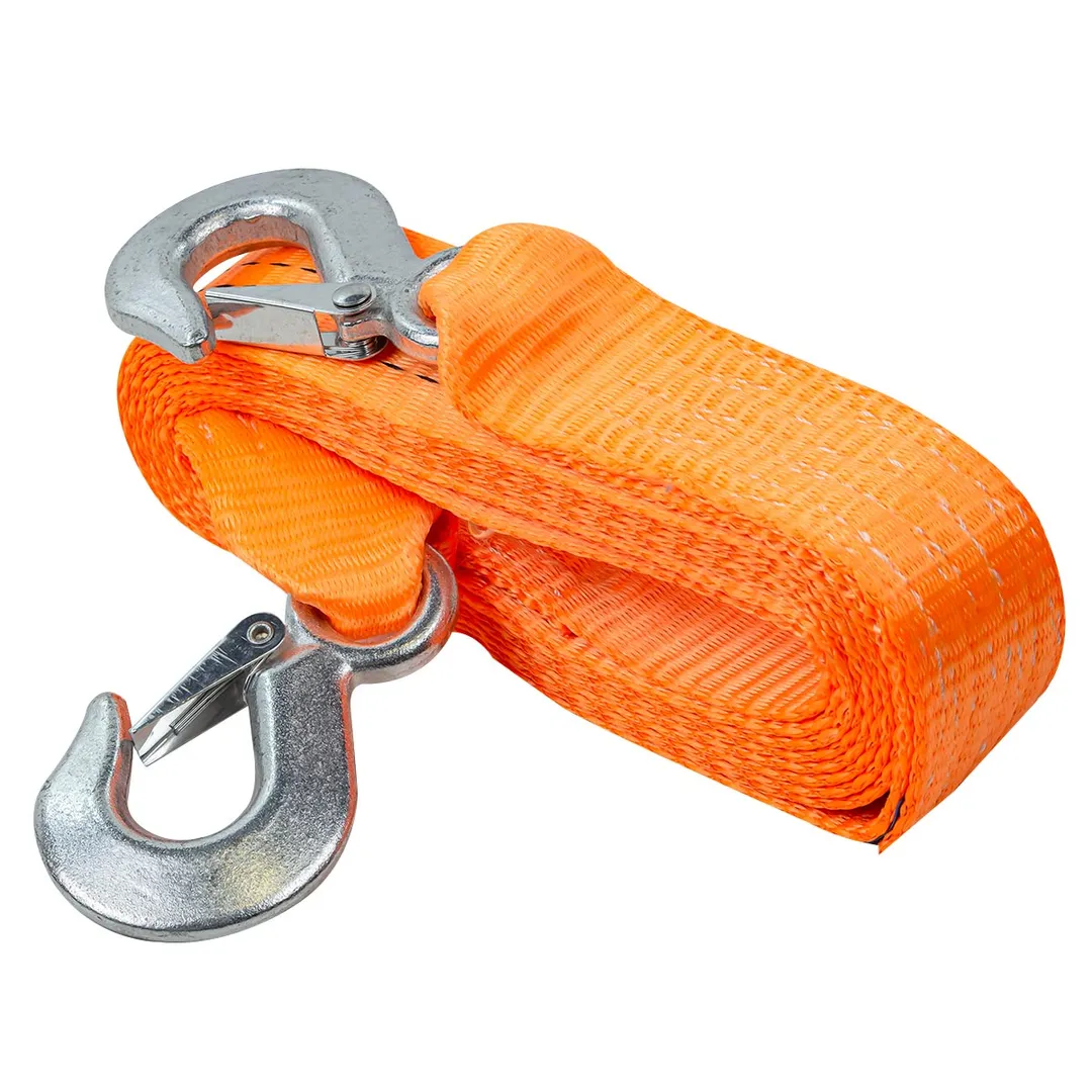 Буксировочный трос является специальным инструментом, который используется для буксировки автомобилей или других транспортных средств. Он изготавливается из прочного материала как полиэстер и имеет крюки карабины повышенной прочности на концах для крепления к автомобилю. Лента для авто длинной 4 метра и шириной 50 мм. Максимальная нагрузка 4 тонны. Ремень автомобильный (стропа) позволяет безопасно и эффективно буксировать грузовой или легковой автомобиль в случае поломки или аварии. При эксплуатации необходимо избегать провисания троса и рывков, а также попадания ленты под колеса. Рекомендуется использовать трос с разрывной нагрузкой, превышающей массу буксируемого автомобиля. Для этого нужно снаряженную массу автомобиля умножаить на 3, затем подбираем трос с равной или большей нагрузкой. Этот аксессуар является важной частью аварийного набора каждого автовладельца и могут понадобиться в различных ситуациях на дороге.