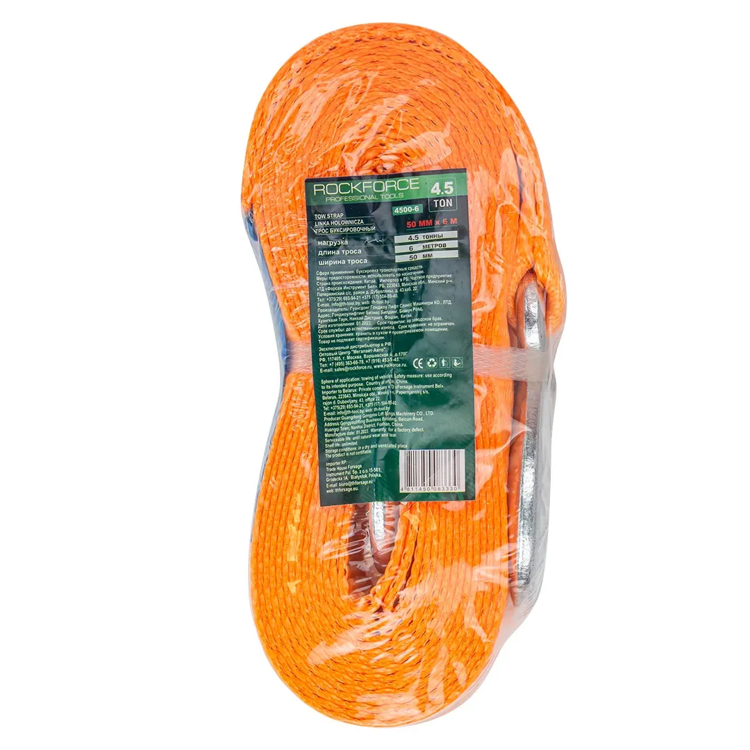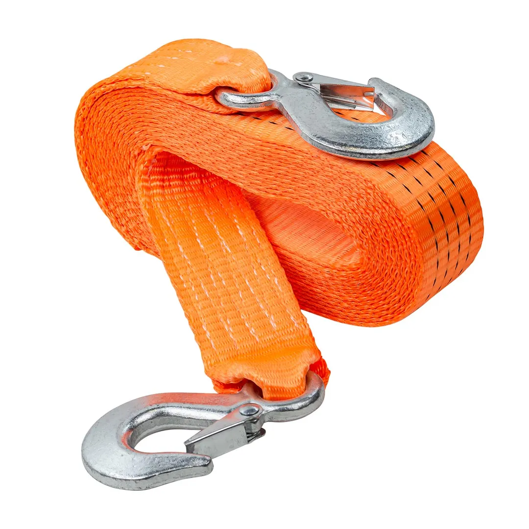Буксировочный трос является специальным инструментом, который используется для буксировки автомобилей или других транспортных средств. Он изготавливается из прочного материала как полиэстер и имеет крюки карабины повышенной прочности на концах для крепления к автомобилю. Лента для авто длинной 6 метров и шириной 50 мм. Максимальная нагрузка 4,5 тонны. Ремень автомобильный (стропа) позволяет безопасно и эффективно буксировать грузовой или легковой автомобиль в случае поломки или аварии.