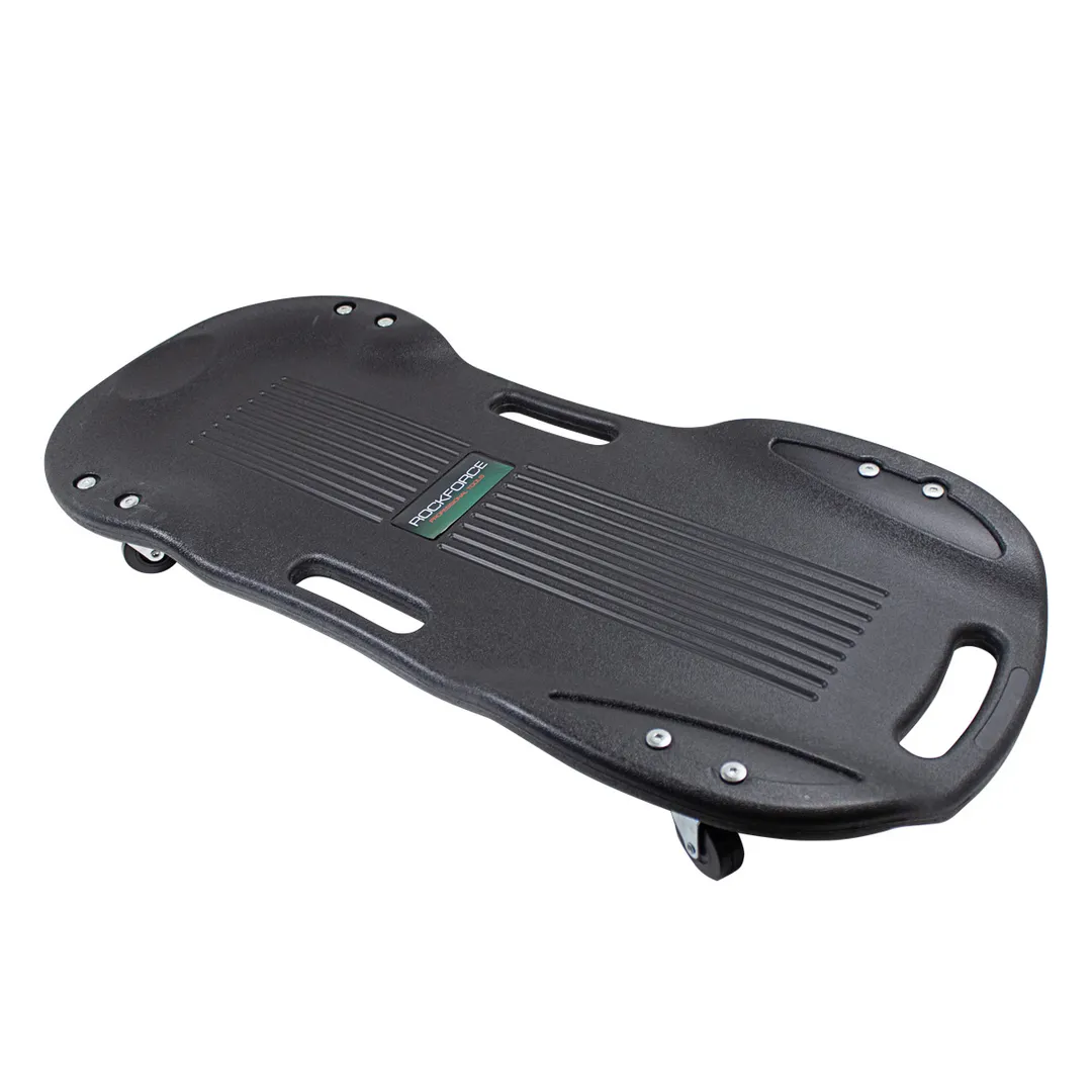 Ремонтный пластиковый подкатной лежак на 4-х колесах 400 х 850мм обеспечивает удобство проведения ремонтных работ под автомобилем. Конструкция оснащена 4 поворотными колесами для маневренности и уверенного передвижения по полу.Мягкая вставка сохраняет правильное положение шеи во время работ. Технические характеристики: Длина рабочей части, мм 850; Ширина рабочей части, мм 400; Максимальная нагрузка 100кг.