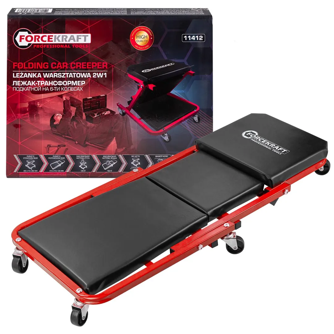 Стул-лежак ремонтный от бренда FORCEKRAFT идеально подходит для работы в автомобильных сервисах и гаражах. Этот многофункциональный трансформер может использоваться как в сложенном, так и в разложенном виде, обеспечивая универсальность и удобство. Изготовлен из прочного материала, гарантирующего долговечность и надежность. Размер металлической трубки: 20х20 мм.