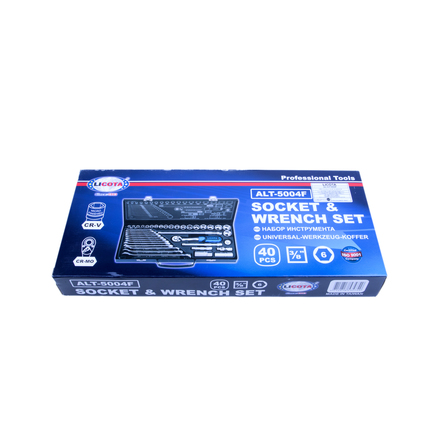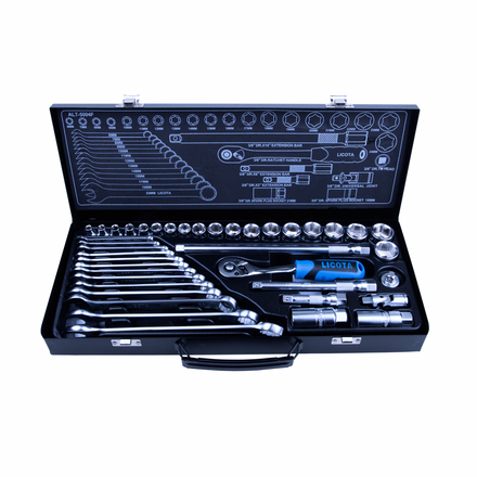Набор инструментов 3/8", 40 предметов, Licota ALT-5004F - необходимый минимум для ремонта автомобиля. Компоненты набора выполнены из высококачественной инструментальной стали и упакованы в кейс с металлическими замками.