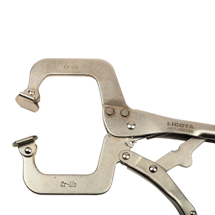 Ручные тиски струбцина С-образные с шарнирными губками Licota APT-39014B применяются для плотного прижатия друг к другу металлических изделий (например, элементов автомобильного кузова) во время сварки или клепки, а также для удержания от проворачивания деталей во время ремонтных работ.