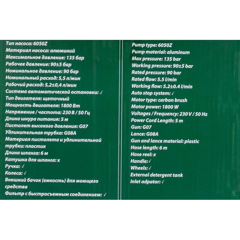 Мойка высокого давления электрическая (230-240В, 1800Вт, номин.расход 5.5л/мин.)