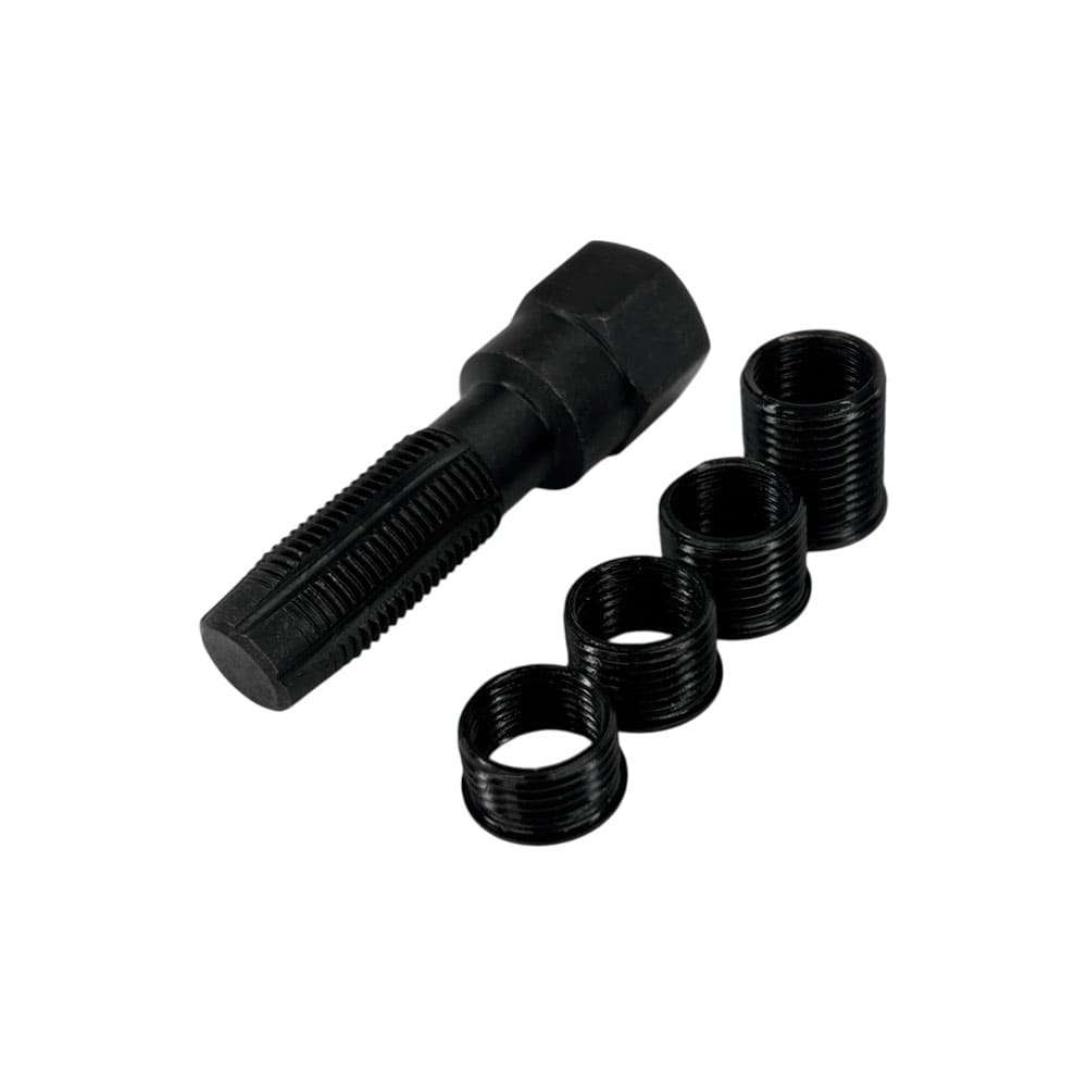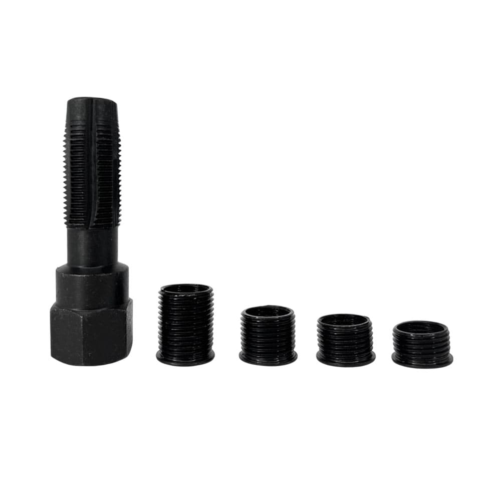 В наборе есть четыре втулки с диаметрами 3/8", 7/16", 1/2", 3/4", которые помогут вам создать прочную и надежную резьбу в свечном отверстии.