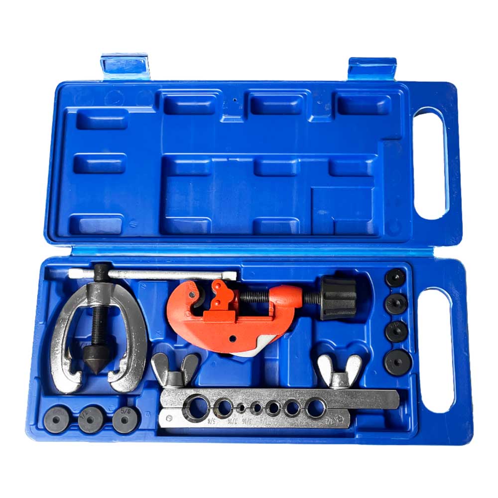 Набор инструментов для развальцовки и резки тормозных трубок 10 предметов (3/16'', 1/4'', 5/16'', 3/8'', 7/16'', 1/2'', 5/8'' мм ) в кейсе.