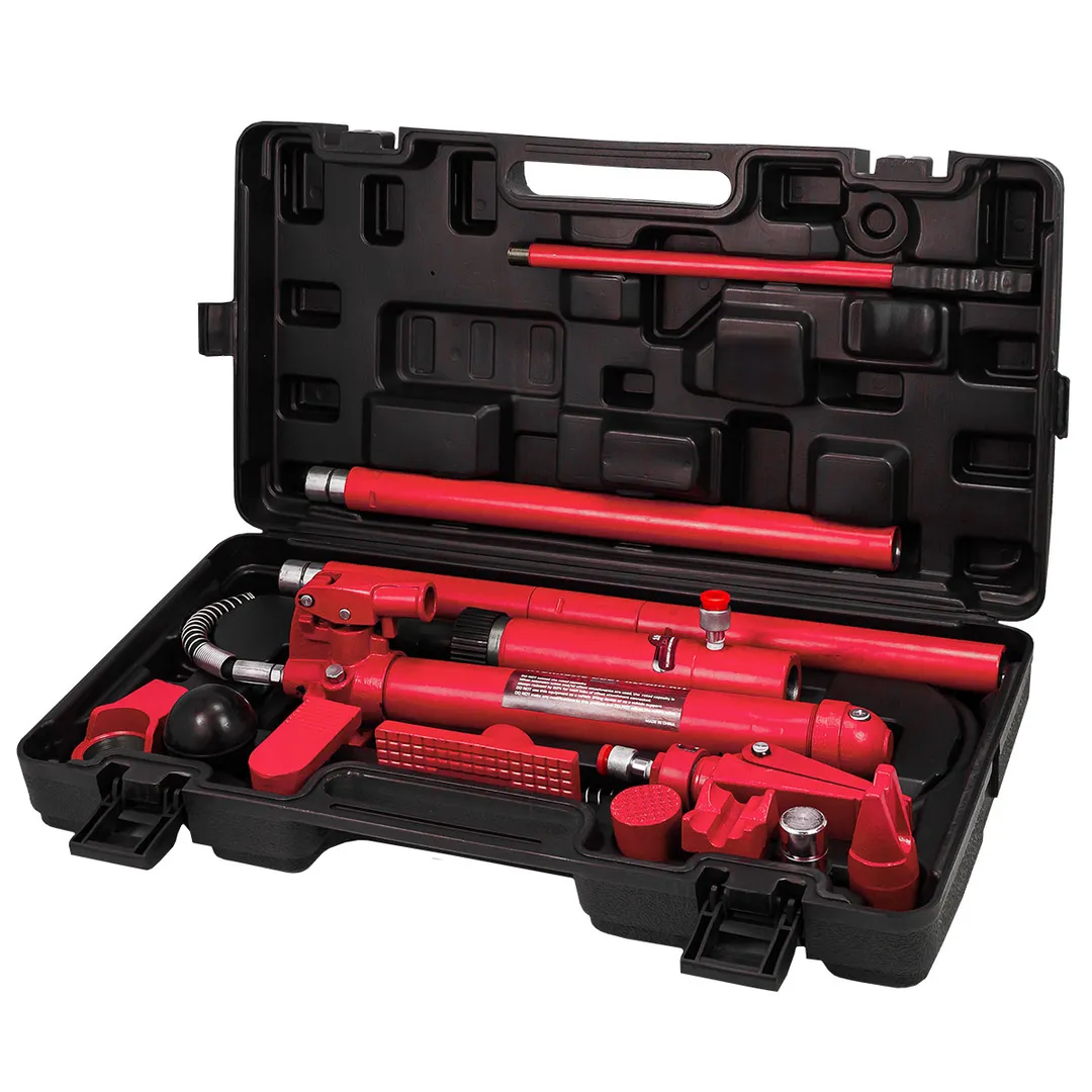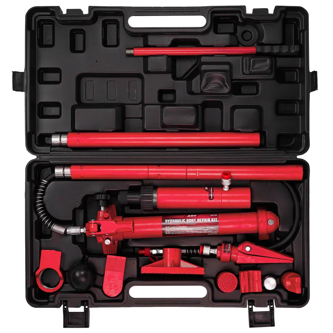 Набор гидравлического оборудования для кузовных работ предназначен для восстановления геометрии кузова и представляет собой компактный комплект из следующих состовляющих: Гидронасос, Гидрошланг, Гидроцилиндр, Удлинитель 4 шт., Насадка распорная клиновая, Плоский упор, Насадка фигурная клинообразная, Насадка зубчатая, V-образный упор 90°, Коннектор с наружной резьбой, Насадка резиновая, Упор цилиндра, Упор плунжера, Пластиковый кейс.