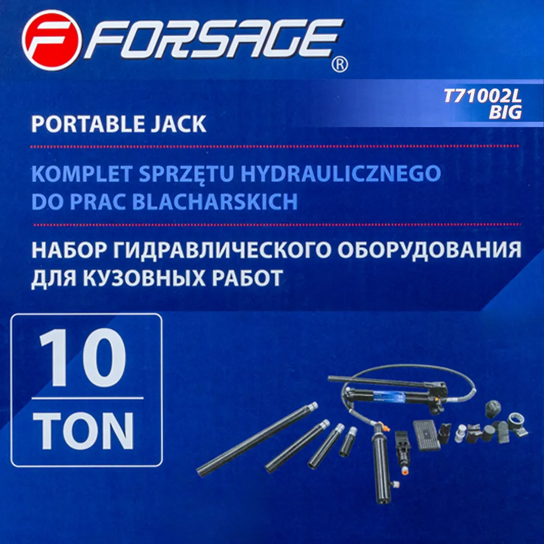 Насос гидравлический 10т 480мм; Цилиндр гидравлический 10т 380мм; Насадки для гидравлического цилиндра 7шт.; Расширитель гидравлический 0,5т; Удлинители для цилиндра гидравлического 100мм, 200мм, 300 мм, 550мм.