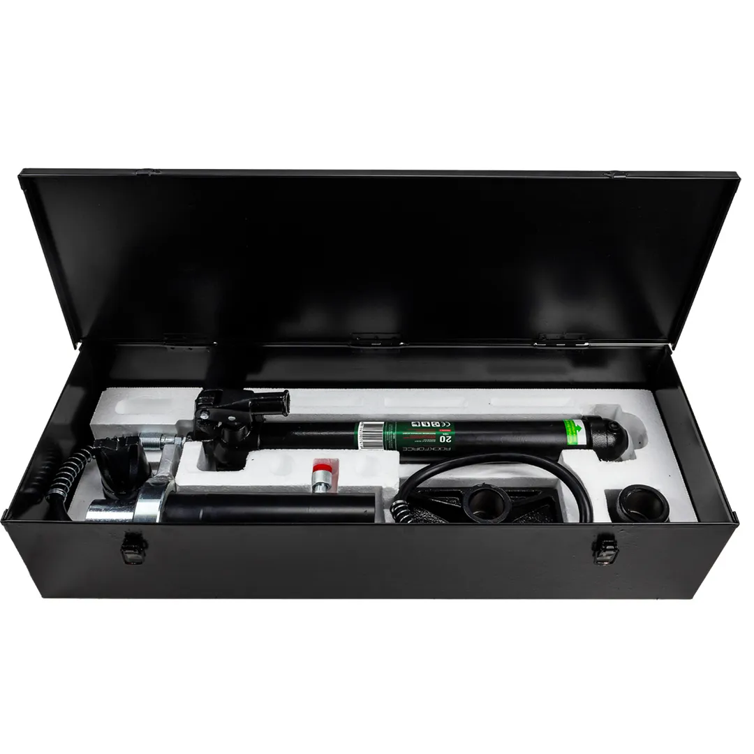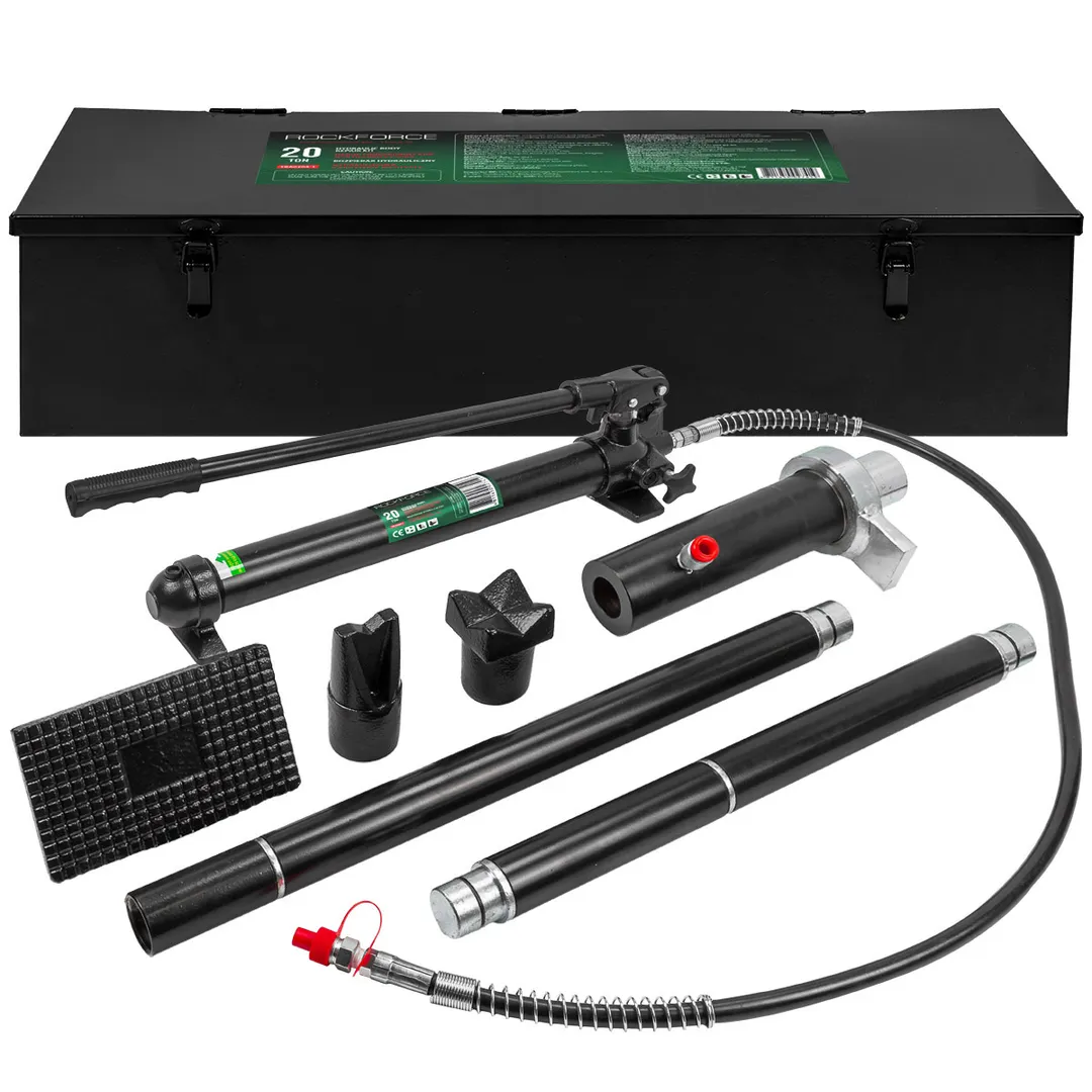 Насос гидравлический 20т 560мм; Цилиндр гидравлический 20т 330мм; Насадки для гидравлического цилиндра 3шт.; Расширитель гидравлический 0,5т; Удлинители для цилиндра гидравлического 100мм, 200мм, 300 мм, 520мм.